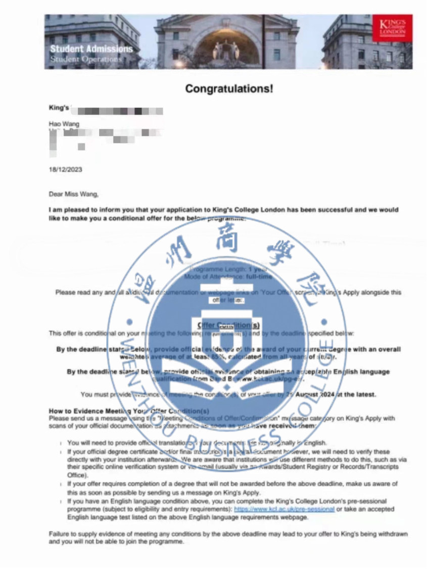 感谢学校四年来的关心与支持,以及老师们一路上的陪伴与帮助,让我对自己的未来有清晰的规划。四年来不懈的努力,让我迎来了心仪的offer。希望能通过这一年的留学生活,让自己拥有更加充实的阅历,拥有更加开阔的视野。也祝学弟学妹们一路逐梦,梦想成真!