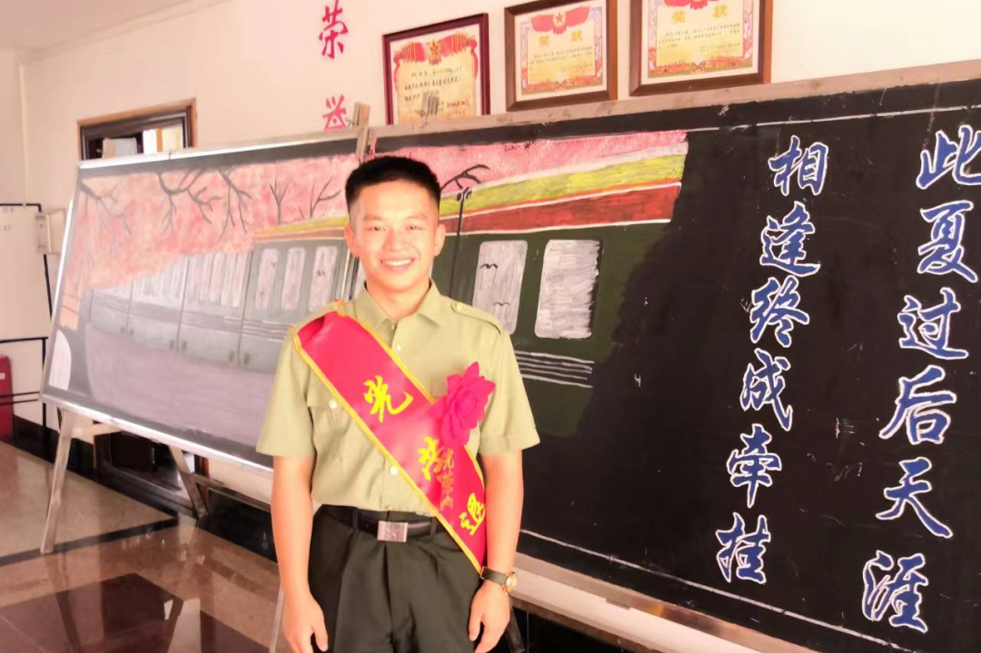 中共党员、学生会执行主席、新生军训教官,多个头衔加持,都源于入学的一次选择。2018年积极响应祖国号召应征入伍,选择了军营,选择了与奋斗为伍、与吃苦相伴。在部队里度过艰苦但充实的两年,学会思考、学会坚强,这一抹迷彩绿成为人生中浓墨重彩的一笔。退役复学后,时刻牢记“退役不褪色,退伍不退质”的本色,也正因为有了部队的锤炼,才促使自己在枯燥乏味的漫长“征途”中坚持下来,成功圆梦