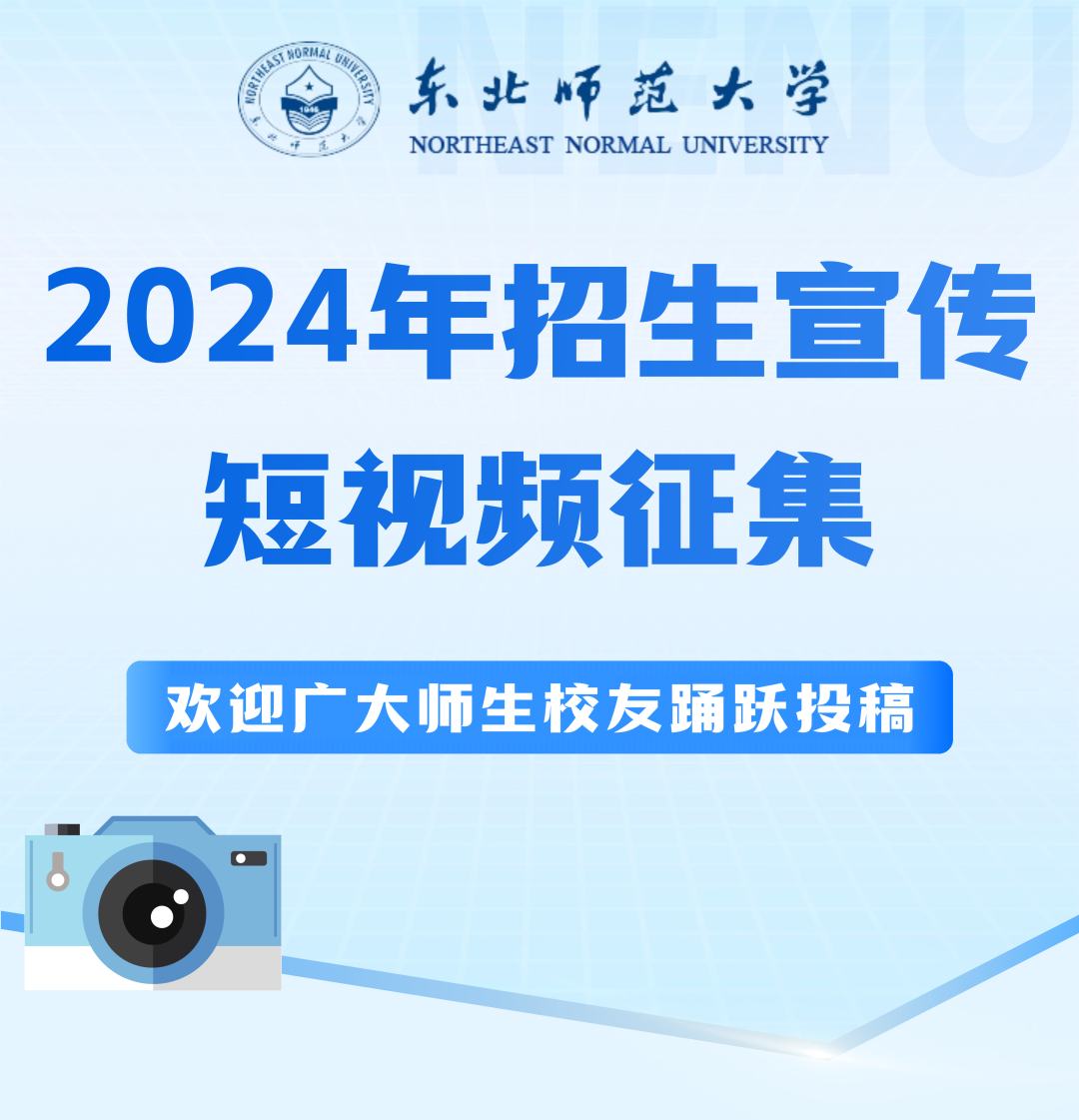 3.要求主题鲜明、突出、内涵丰富,能够充分展示学校学科专业优势、人才培养特色、良好育人环境和浓厚学习氛围等;面向广大高中生和家长群体,具有创新意识、亲和力、吸引力和引导力,体现东师风采,弘扬东师精神。