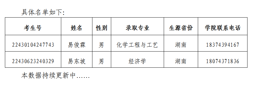 首先恭喜你被我校录取,因你录取通知书的邮寄地址不详或者电话号码无法接通(关机)等问题,导致你的录取通知书无法及时送达,现已退回学校,请看到本公告后立即与我校招生办取得联系,联系电话:0743-8564141。