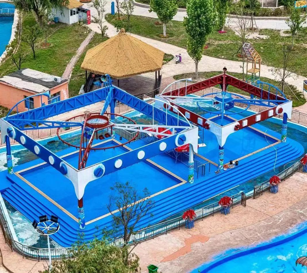 海啸池:该项目水上面积达2万5千平方米,是最惊险刺激的水上游乐项目,采用最先进的第三代真空造浪设备,7种不同浪型,造出的海浪最高可达三米,逼真地再现海啸的汹涌澎湃,“一浪未平,一浪又起”。