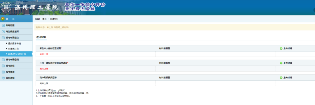 上述材料请以扫描件或照片上传到报名系统,无需邮寄书面材料。如提交的申报材料不全、未按要求上传或图片模糊不清的视为放弃。若考生所上传书面材料中的报考专业组与报名系统最后一次提交的报考专业组不一致,则以系统为准。