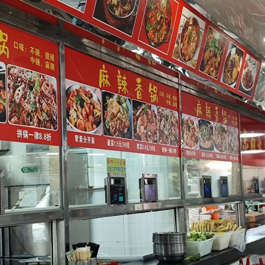 三层的风味食街,有东南亚美食、烧腊、北方煲仔菜、客家菜、东北炖菜、麻辣香锅、水吧等服务窗口,让大家“足不出校”就能品尝各地美食,一吃一个不吱声。