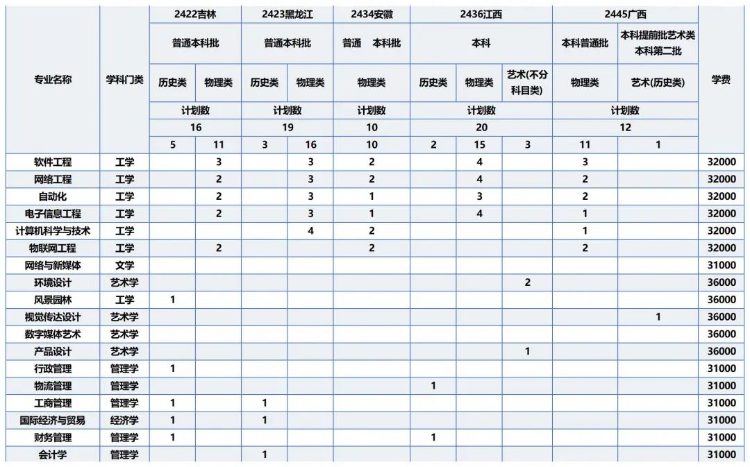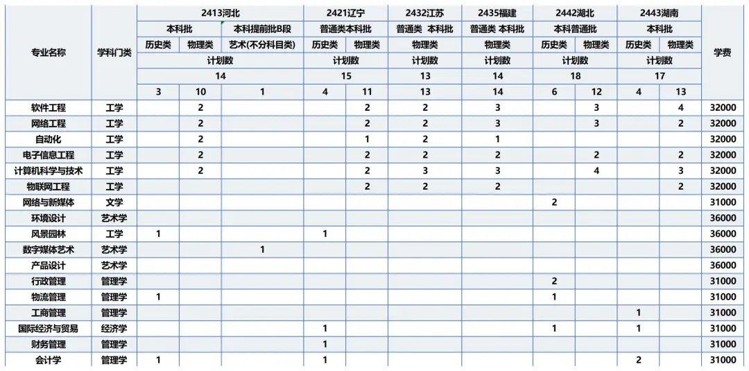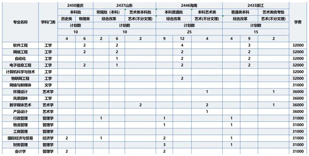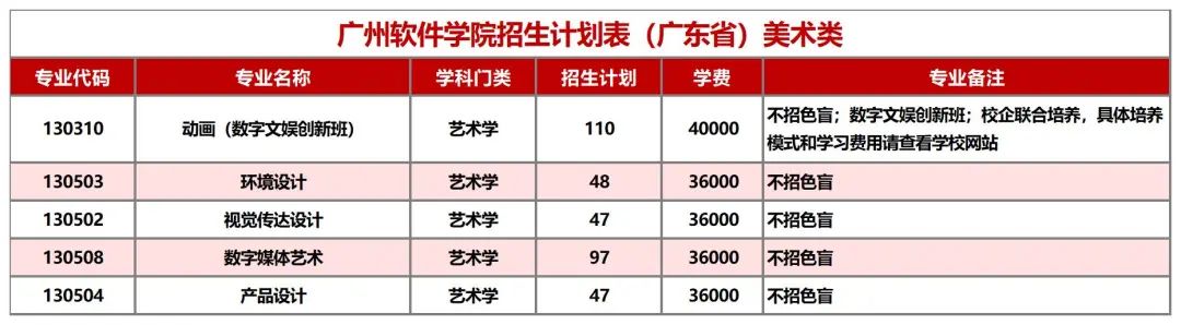 招生计划表(广东省)
