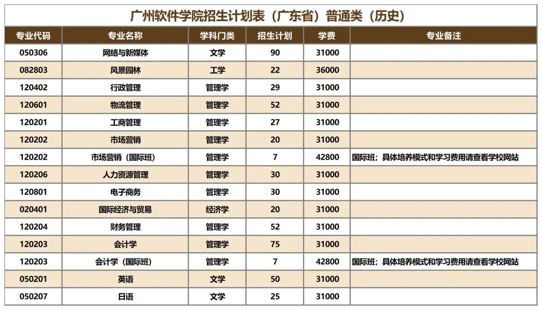 招生计划表(广东省)普通类(历史)