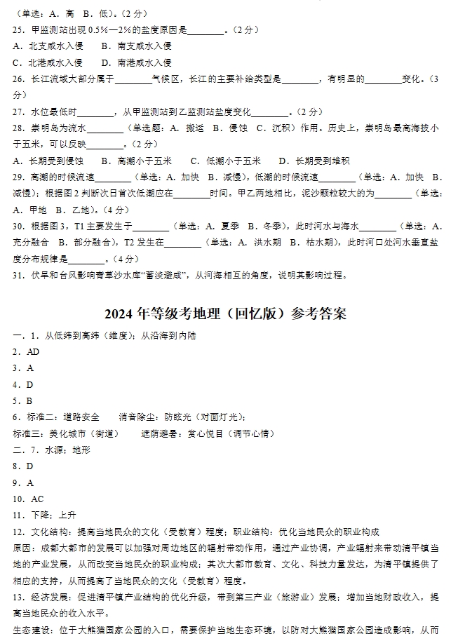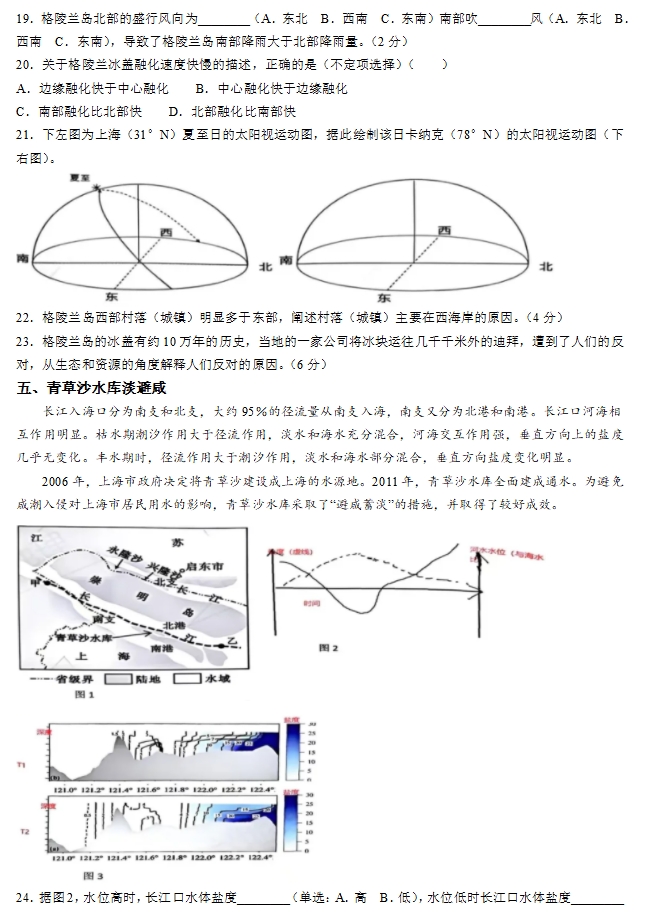 2024年上海高考地理真题及答案