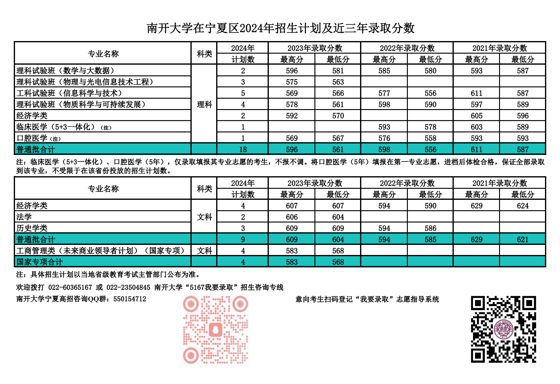 南开大学在宁夏区2024年招生计划及近三年录取分数.pdf