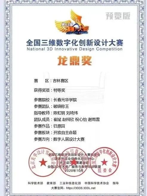 学生获全国三维数字化创新设计大赛