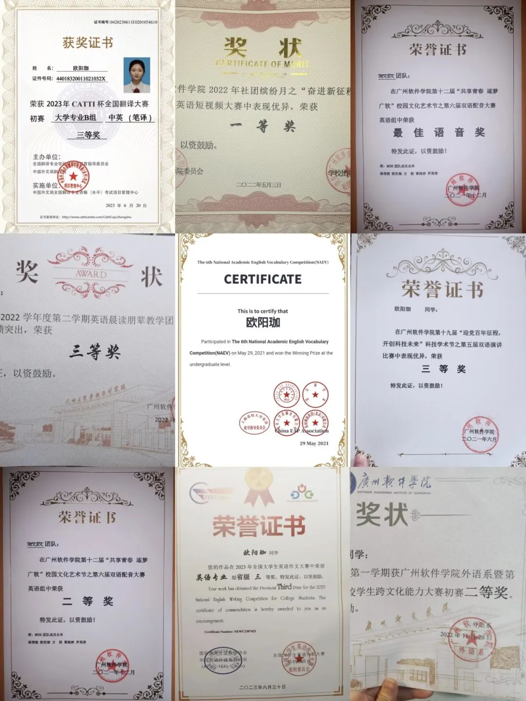 在广软的四年求学生涯中,她积极参与志愿者活动,曾获学校学生奖学金、优秀学生骨干等荣誉称号。在“CICGAP”、全国大学生
