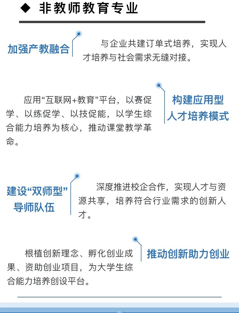 学校秉承“一切为了学生成才,为了一切学生成才”办学宗旨;遵循“厚基础、精专业、强实践、重应用”办学理念;致力于培养基础扎实、作风朴实、适应能力强、实践能力突出,具有创新和就业竞争力的高素质应用型人才。