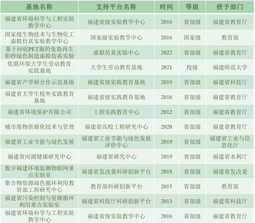 强化实践教学,培养创新能力学院现有本科实验室2516㎡、科研实验室6246㎡,教学科研仪器设备总值7095万元。拥有国家级、省级虚拟仿真实验室,省级本科实验教学中心,3个省级本科生实践教育基地,6个省级研究中心。在福建省环保设计院等单位建立43个校外实习实践基地,并聘请一批有经验的行业专家为双师型导师。