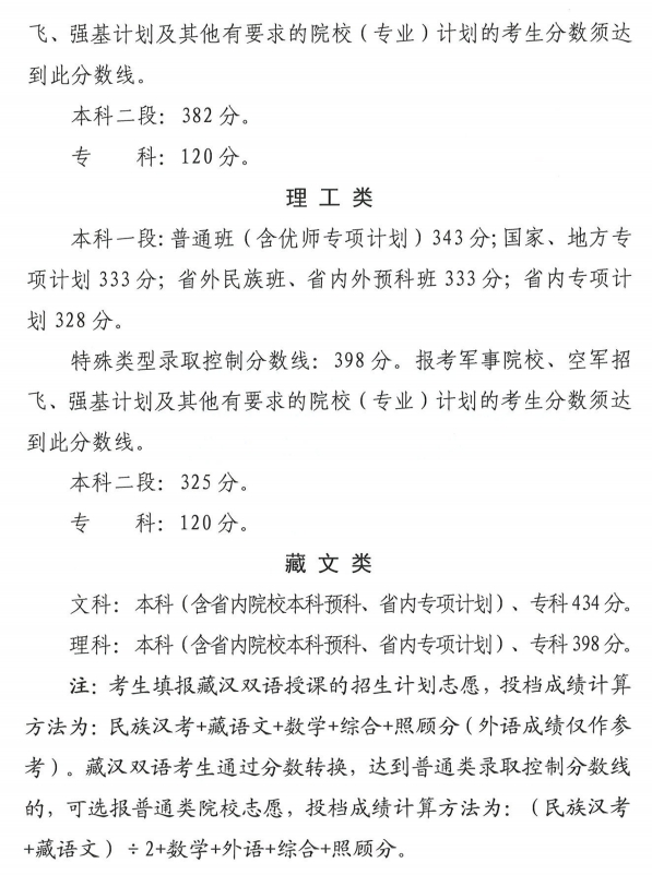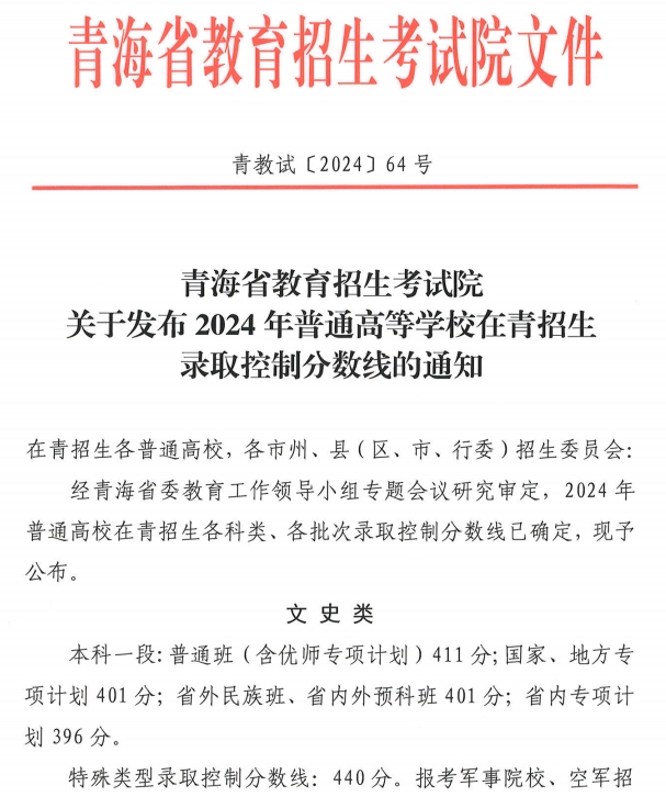 青海2024年高考省控线(批次线)查询