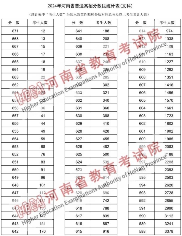文章来源:河南教育考试院 河南省2024年普通高校招生分数段统计表