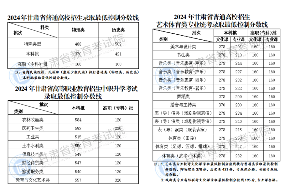甘肃2024年高考省控线(批次线)查询