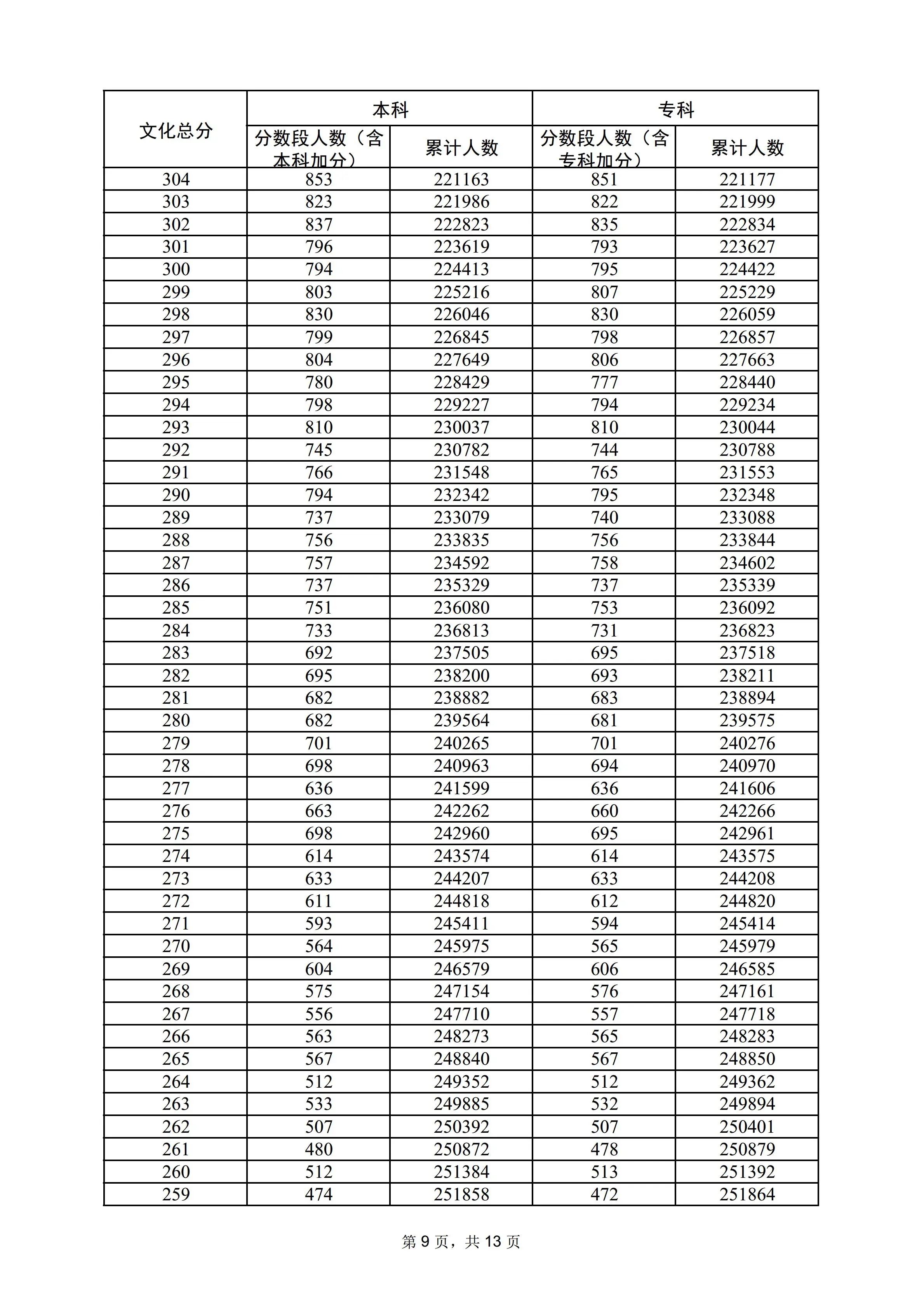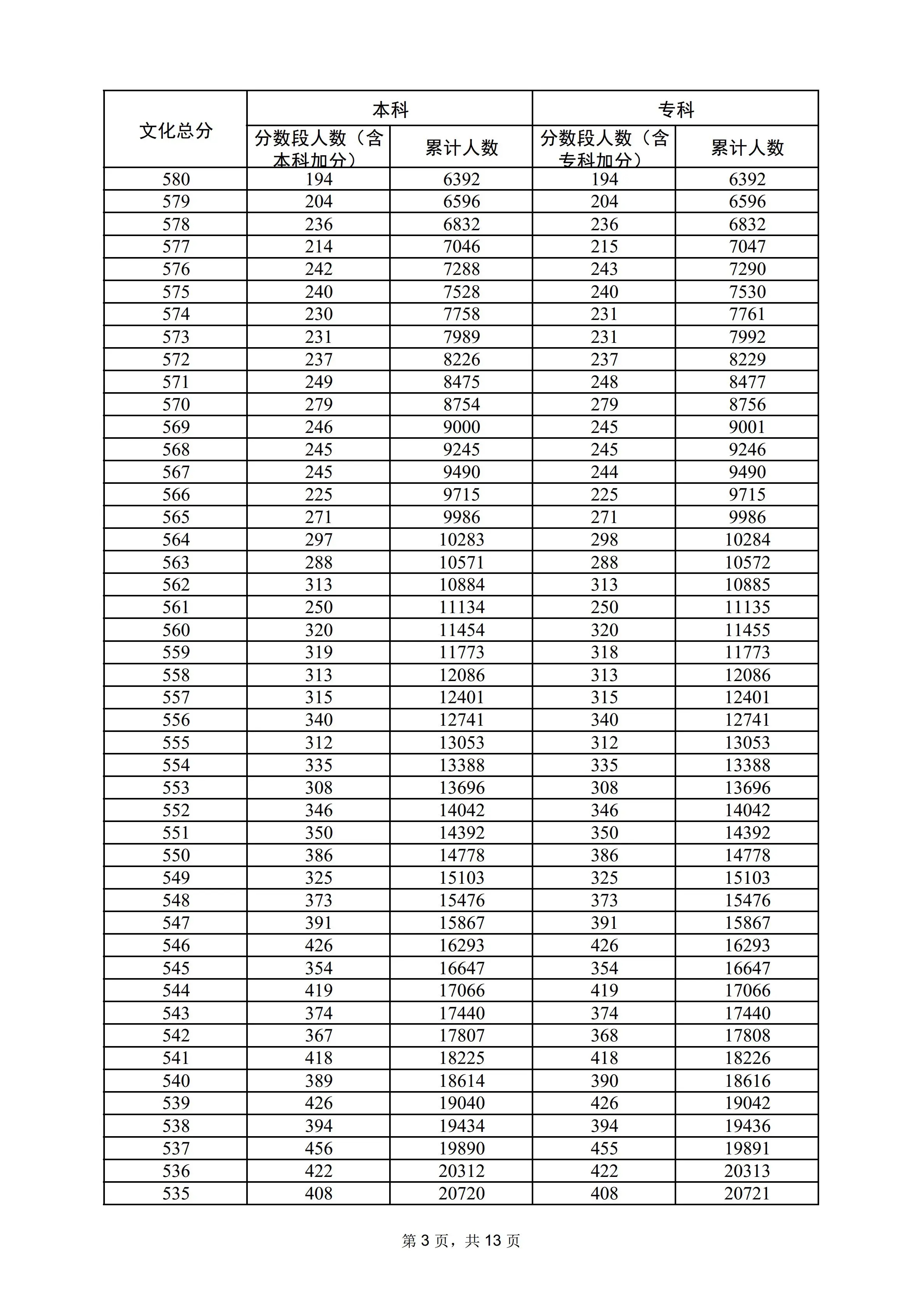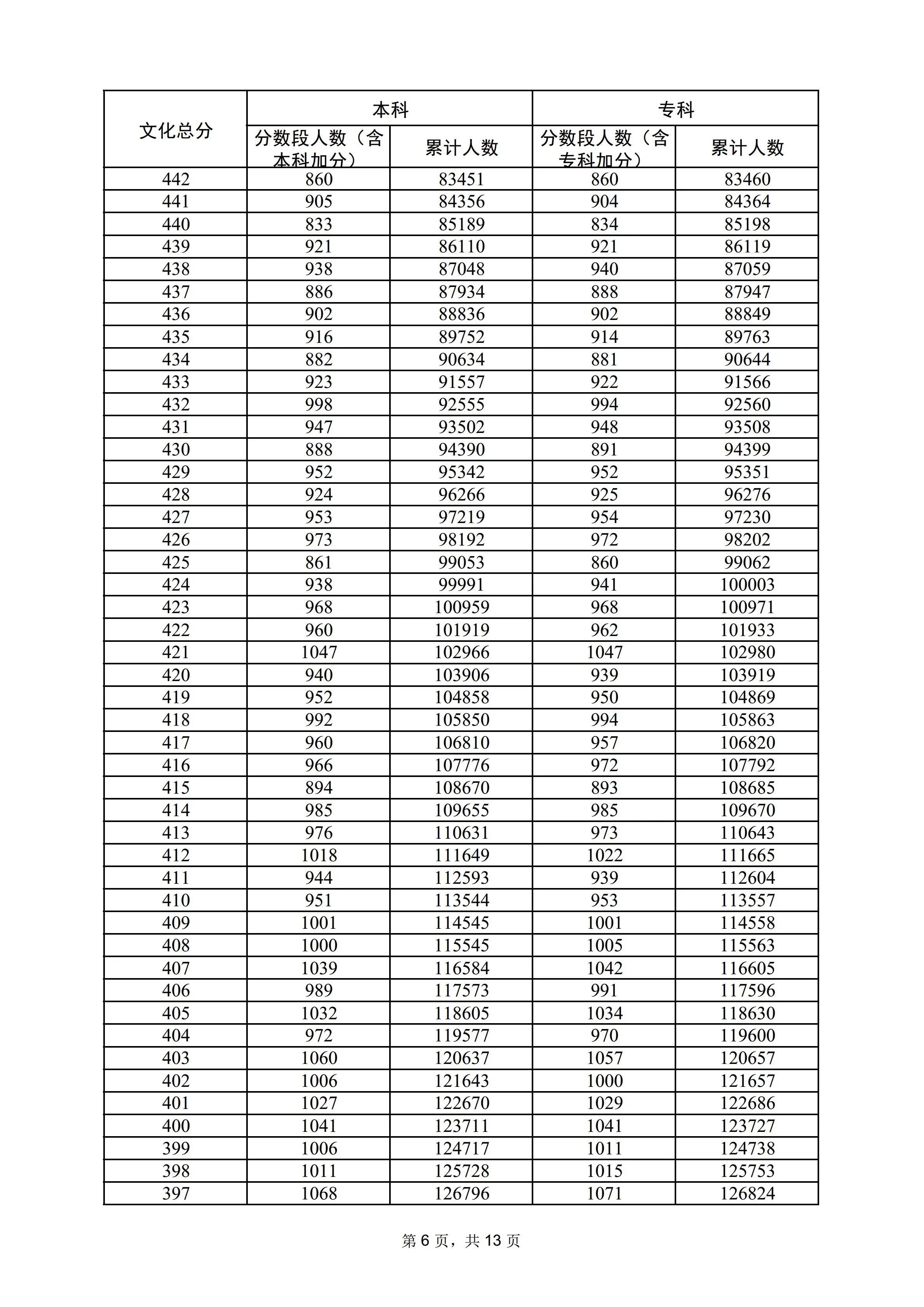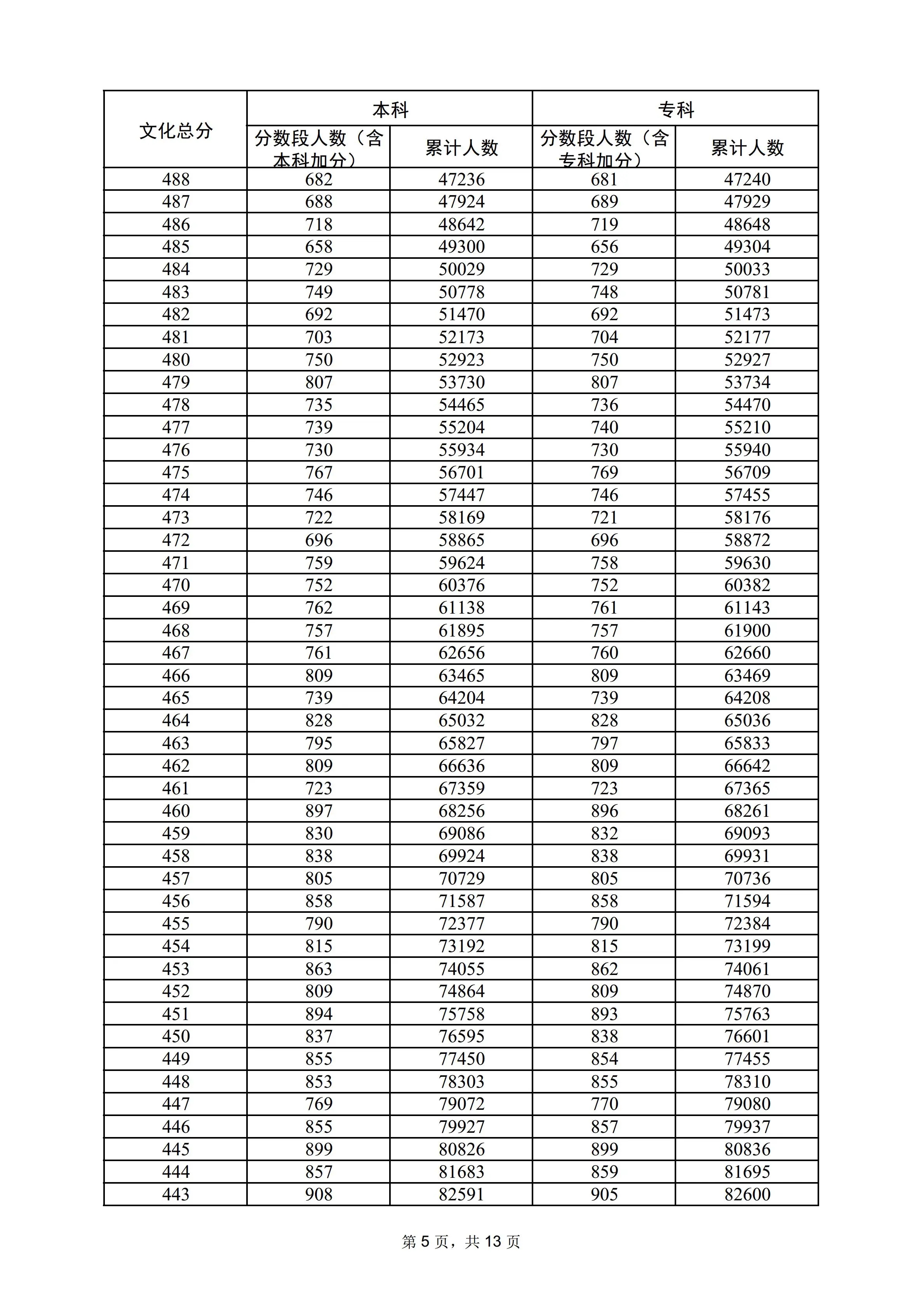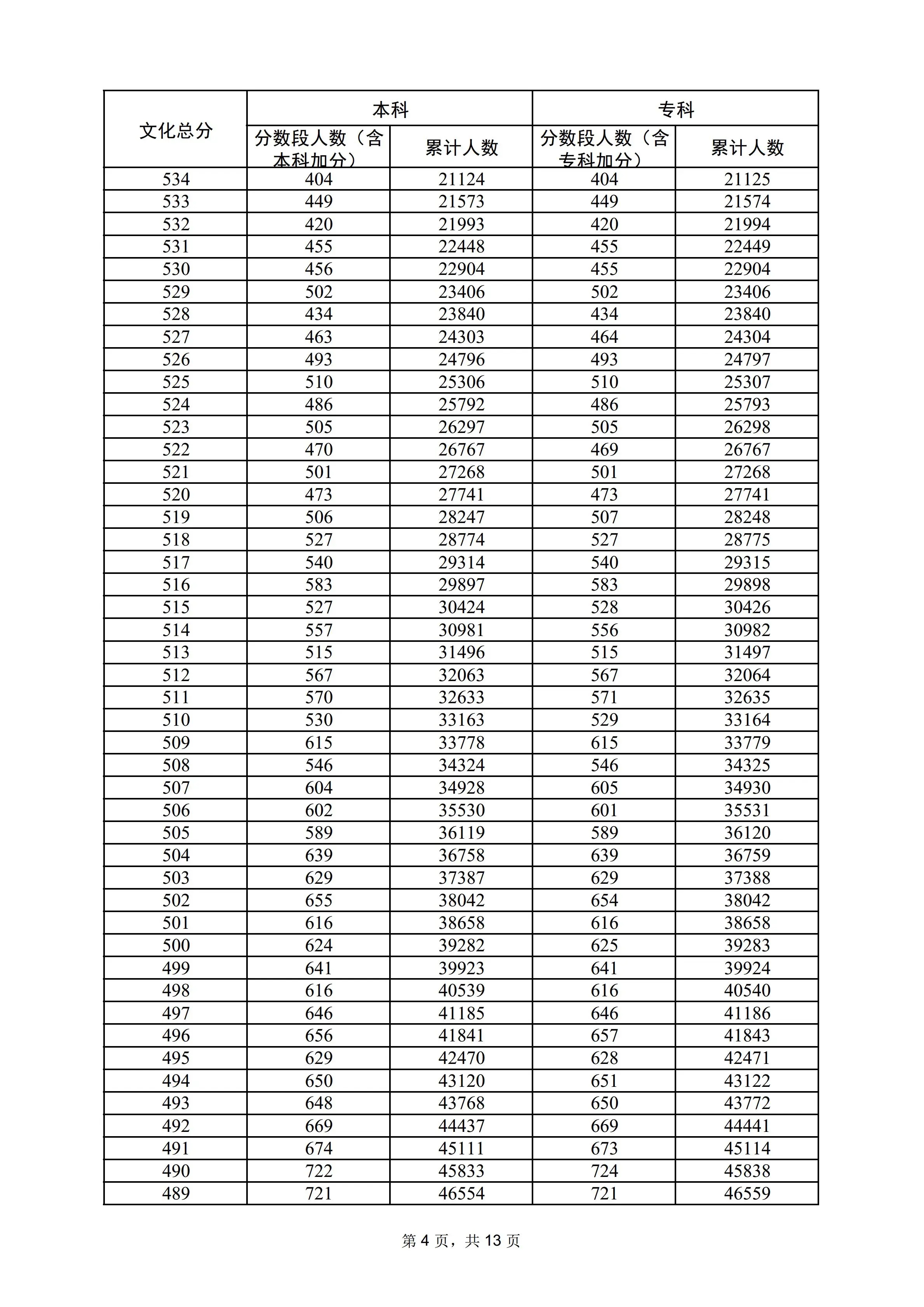 广东省2024年高考普通类(历史)分数段统计表(含本、专科层次加分)