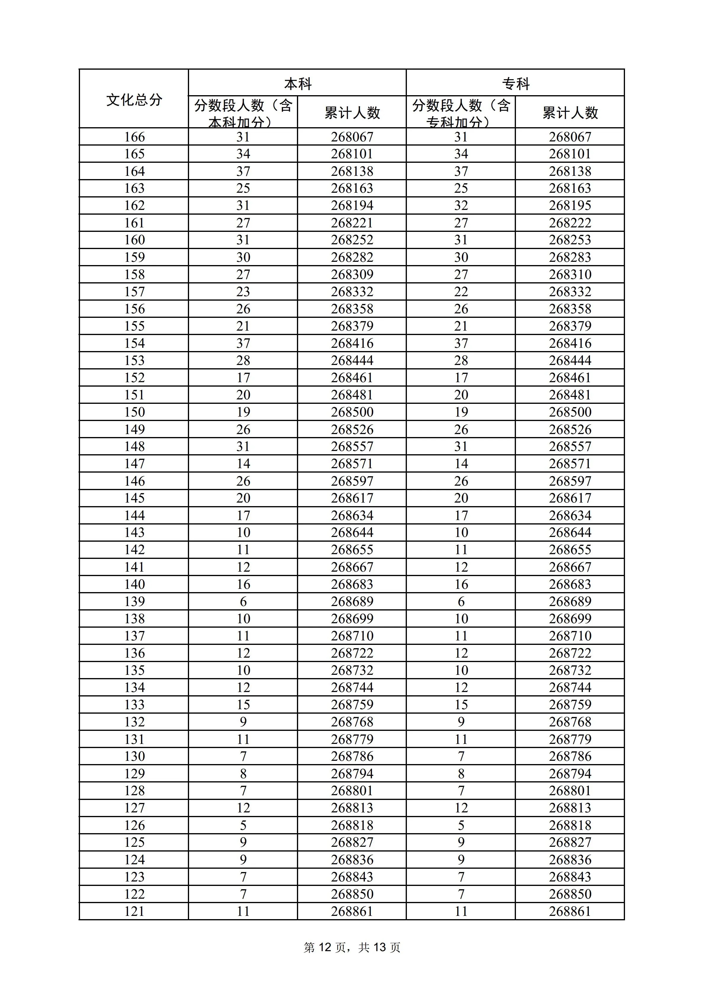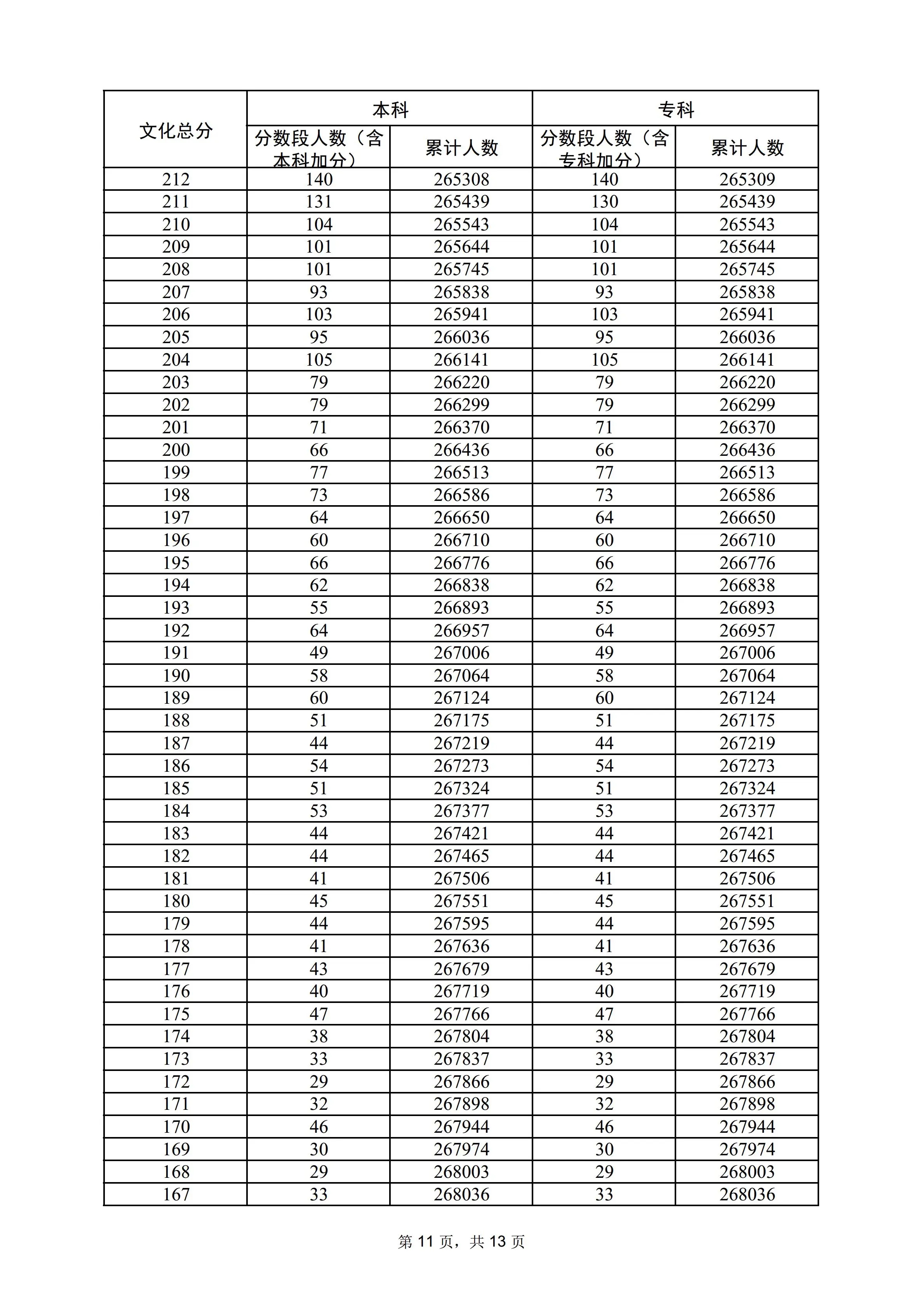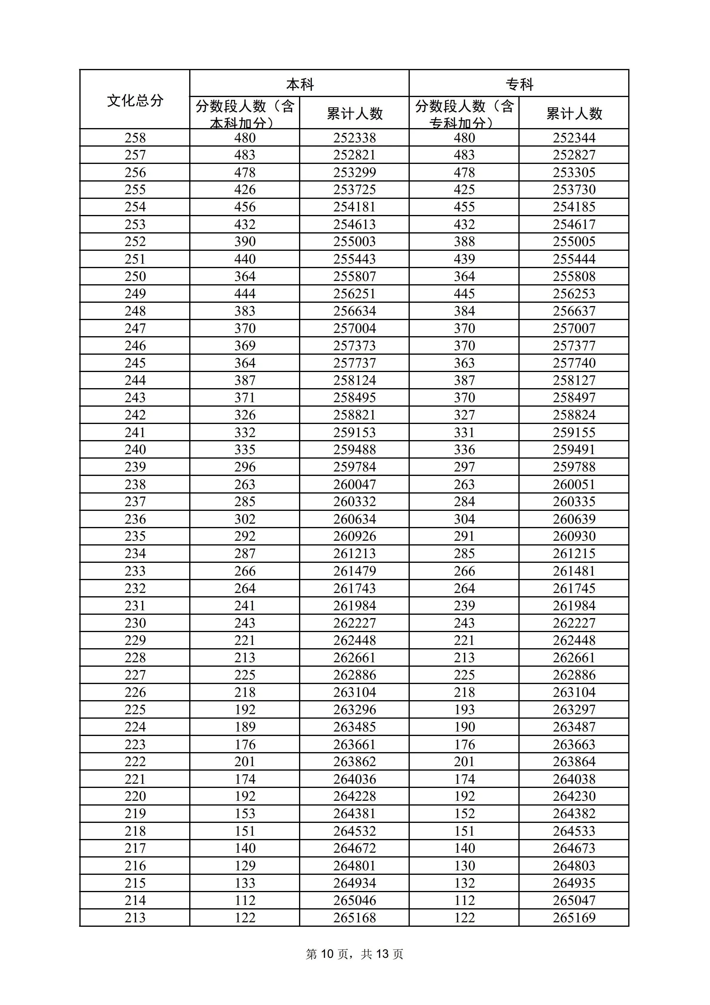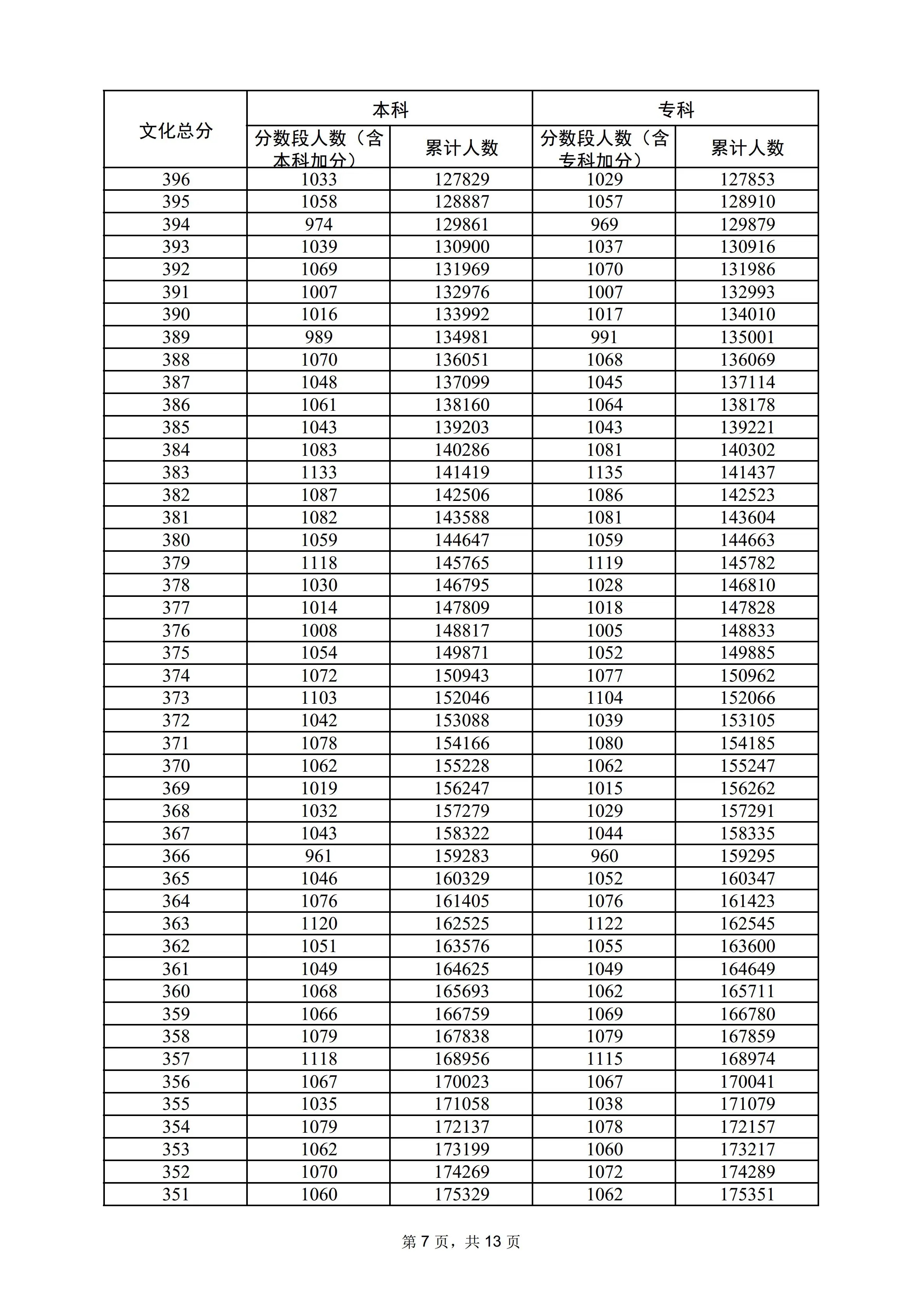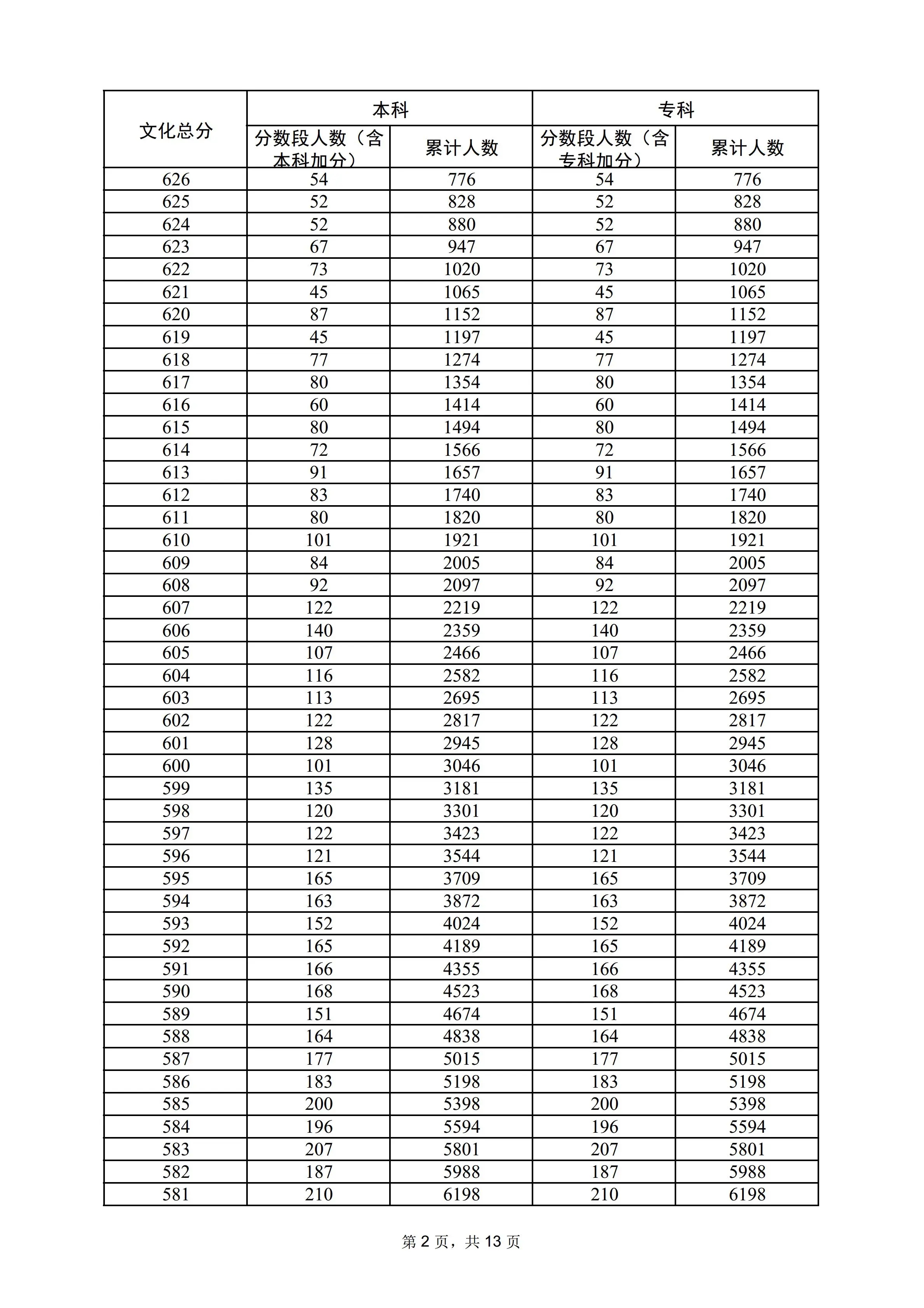 广东省2024年高考普通类(历史)分数段统计表(含本、专科层次加分)
