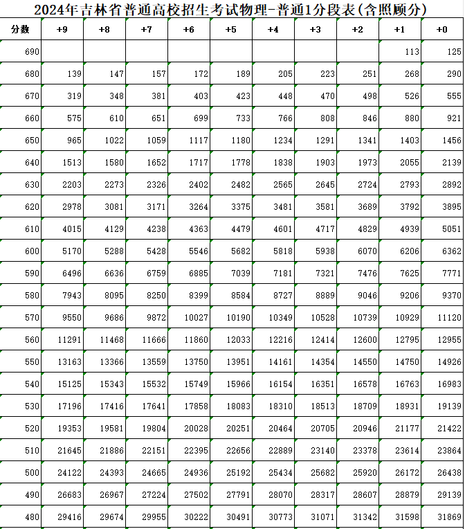 五、吉林省普通高校招生考试成绩统计表(一分一段)
