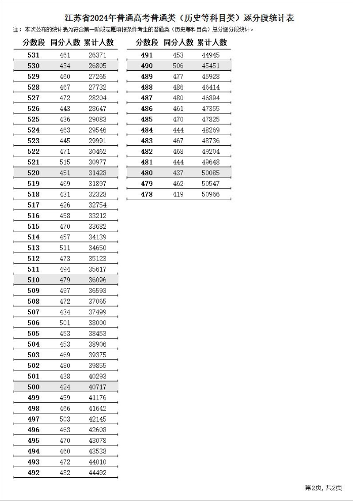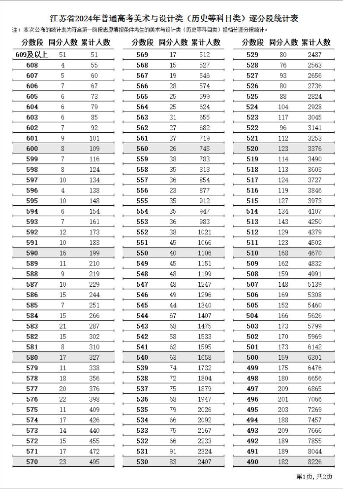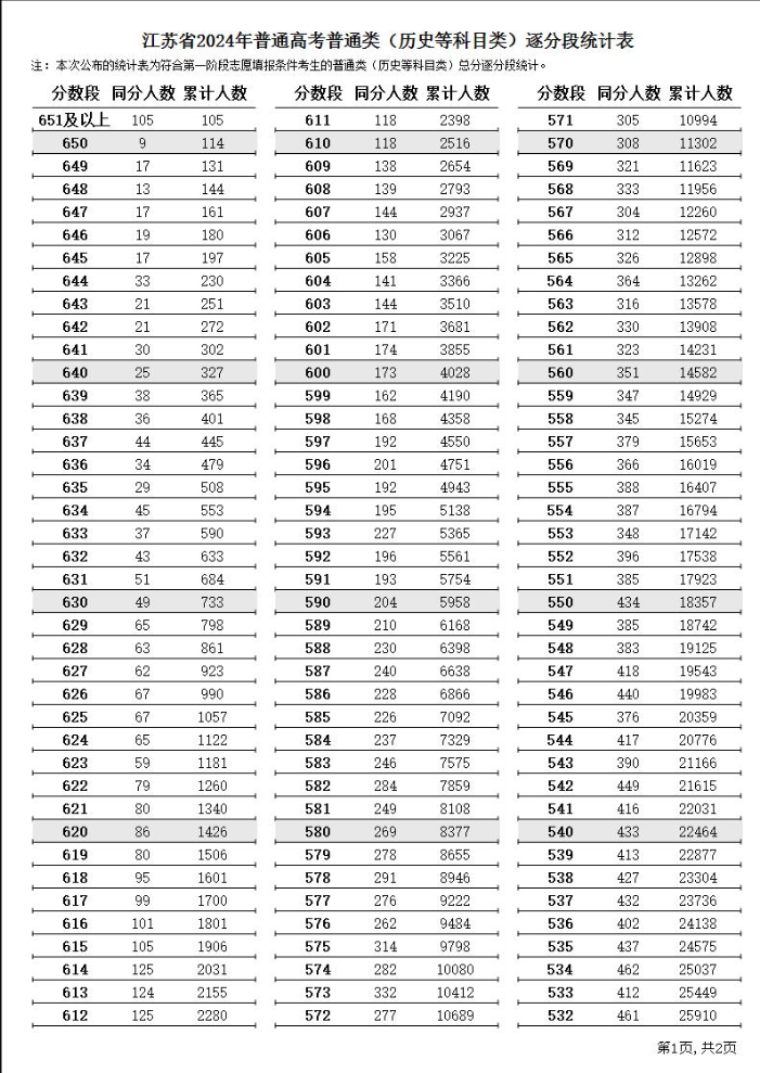 五、江苏省普通高校招生考试成绩统计表(一分一段)