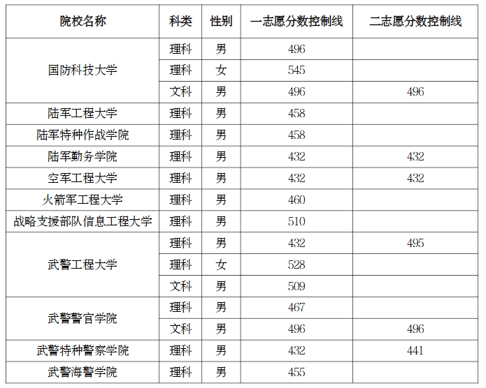 根据有关规定,考生面试体检比例从报考军队院校且政治考核通过、达到我区第一批本科最低录取控制分数线的考生中,区分性别、科类及特殊体检岗位,依据高考总分从高到低的顺序,按照招生计划数量的3至5倍确定参加面试和体格检查的考生对象。其中,文科、女生和体检标准要求为特种作战岗位合格的专业,参加面试和体格检查人数按照计划数量的5倍确定,其余按照计划数量的3倍确定。