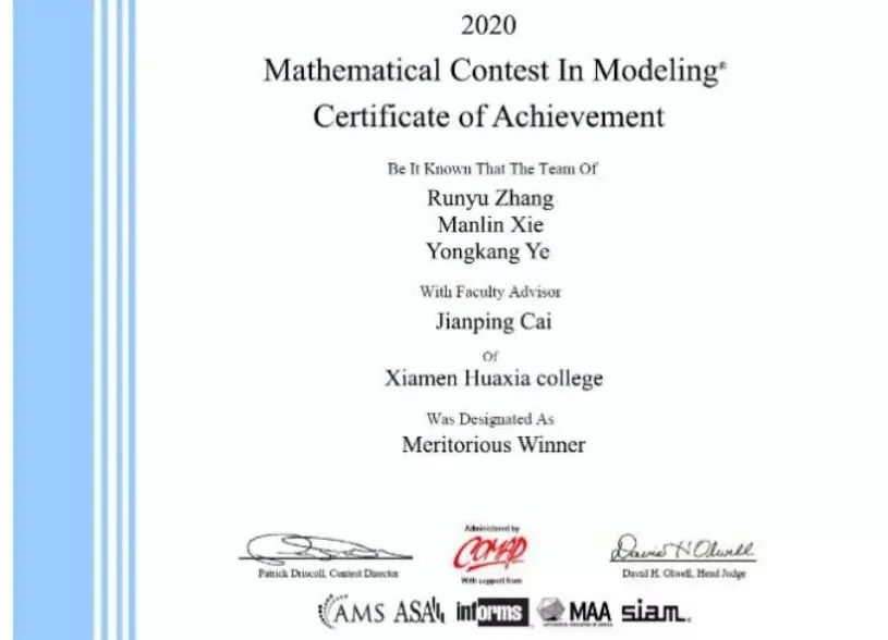 其中包括美国大学生数学建模竞赛等