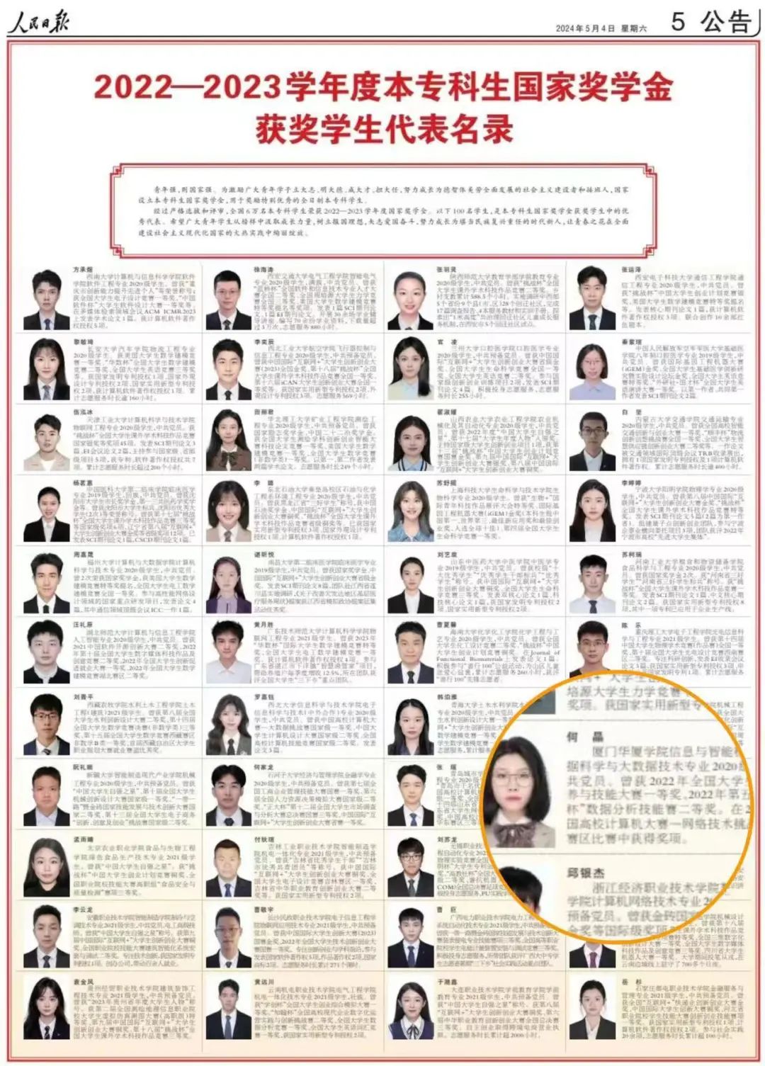 获国家奖学金并登上《人民日报》