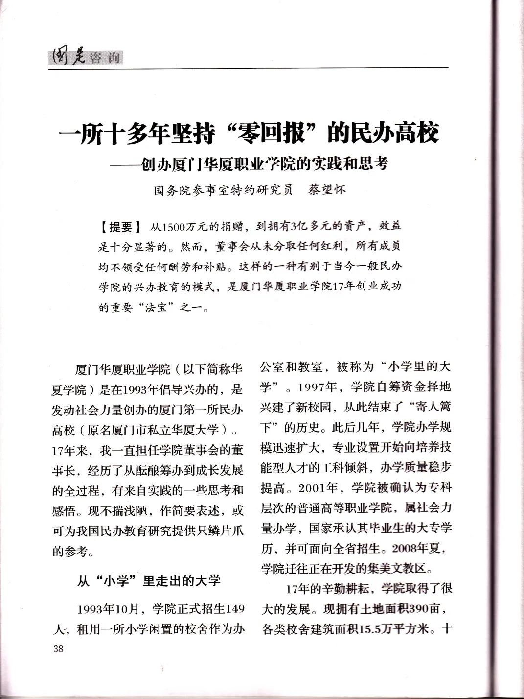 “理事会的‘零回报’办学模式是华厦学院创业成功的重要‘法宝’之一”