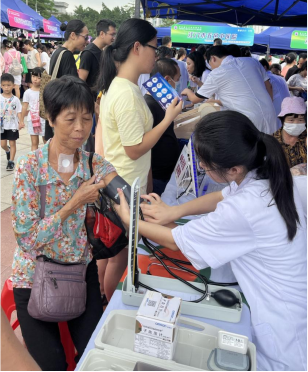 参与者可以带着当场制作的艾条亲身体验艾灸的神奇保健效果。我校科普志愿者还帯来了中医经络检测仪,为市民做身体经络情况检查,还为市民开展