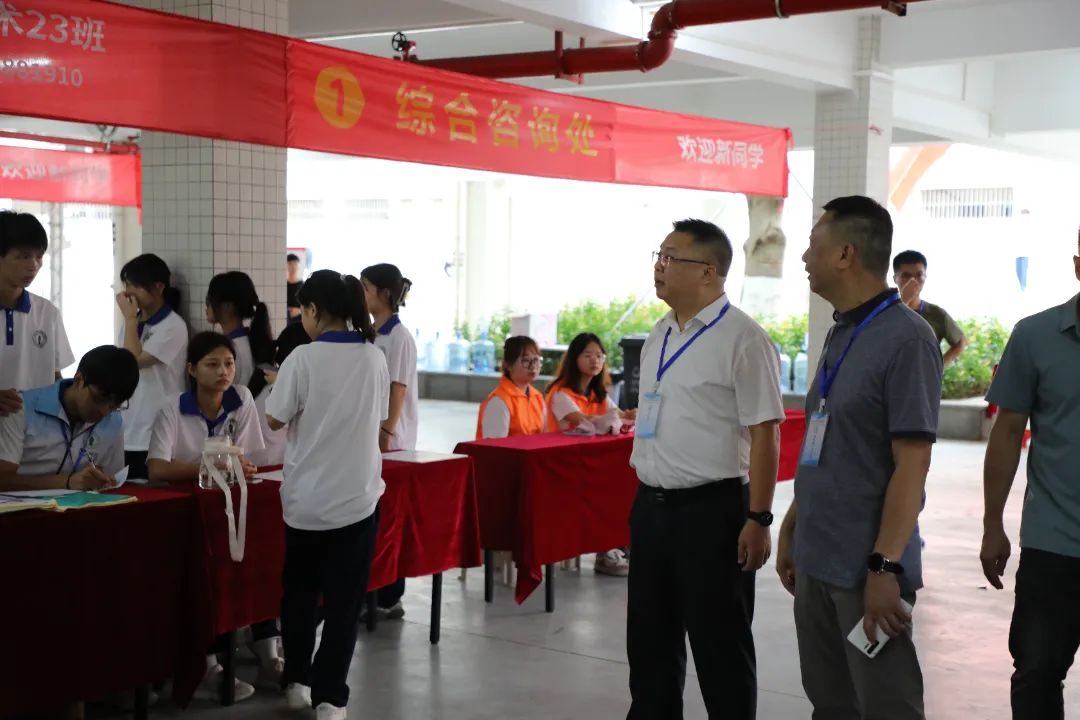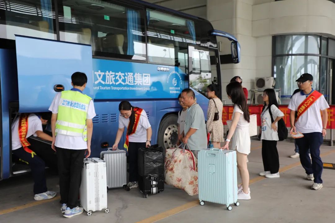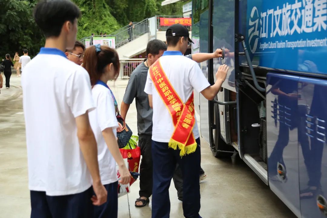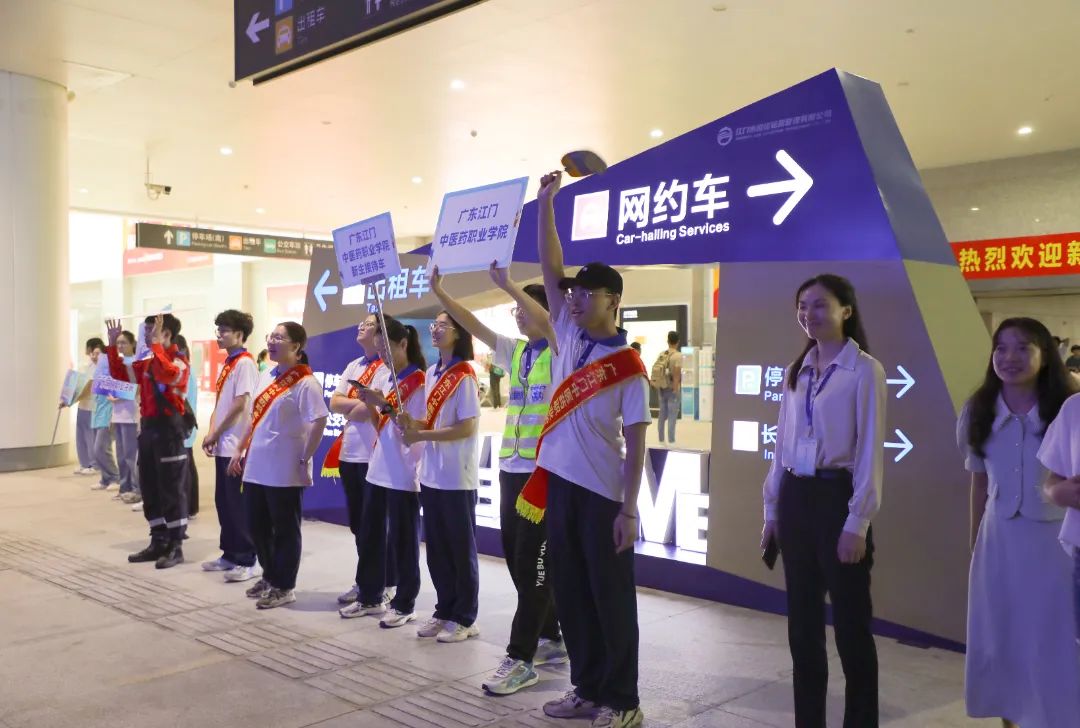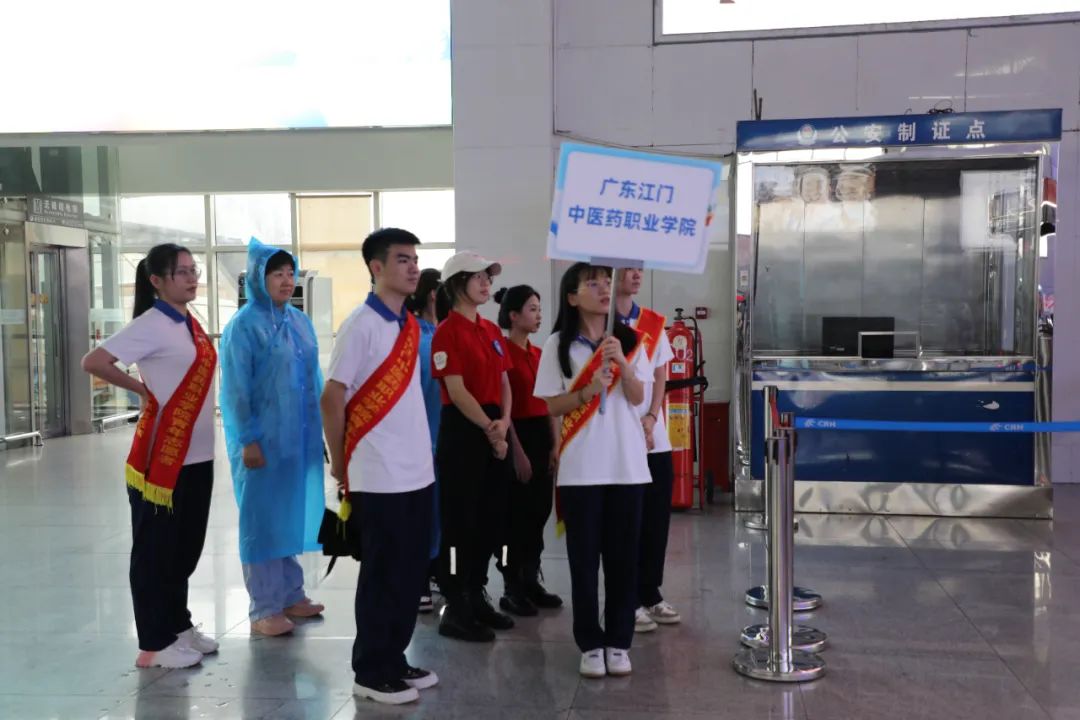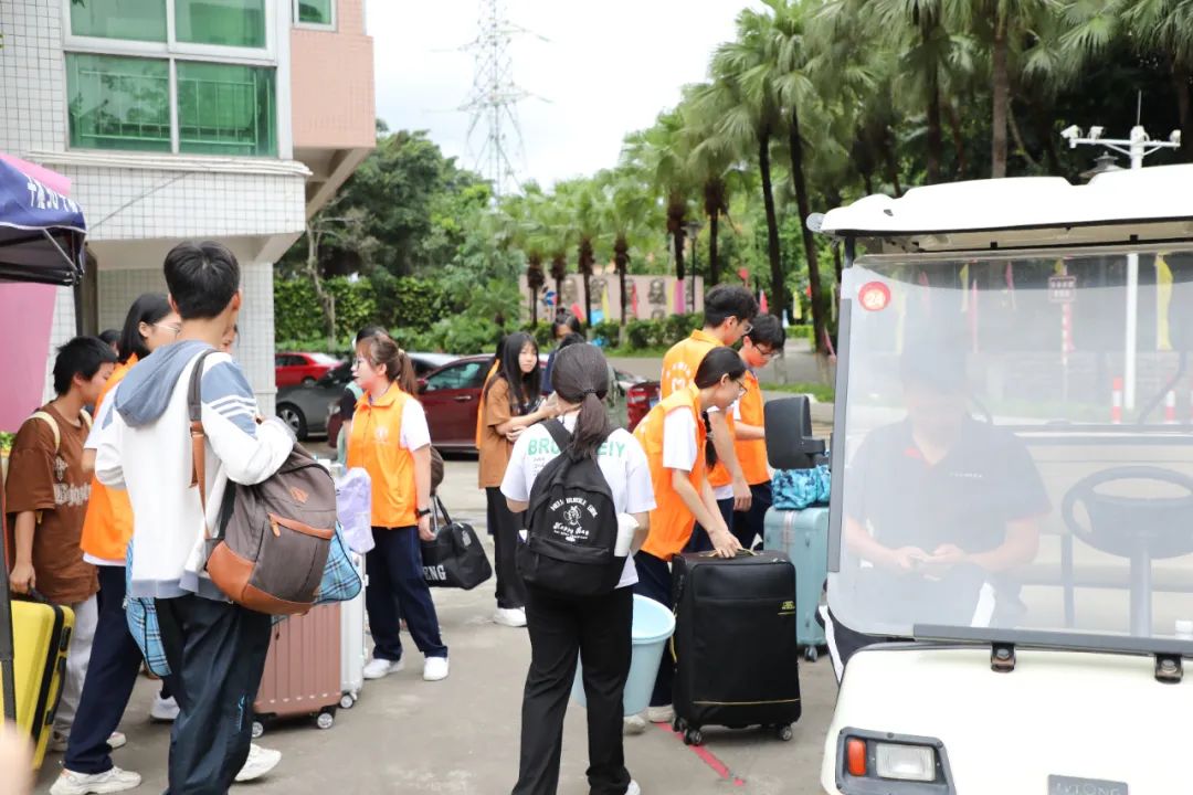 为方便新生来校报到,在报到当日,学校分别在江门汽车总站、江门站(高铁站)、广珠城轨江门东站、学校西南门(旧校门)、南门(新校门)以及学校内部设立新生接待处。