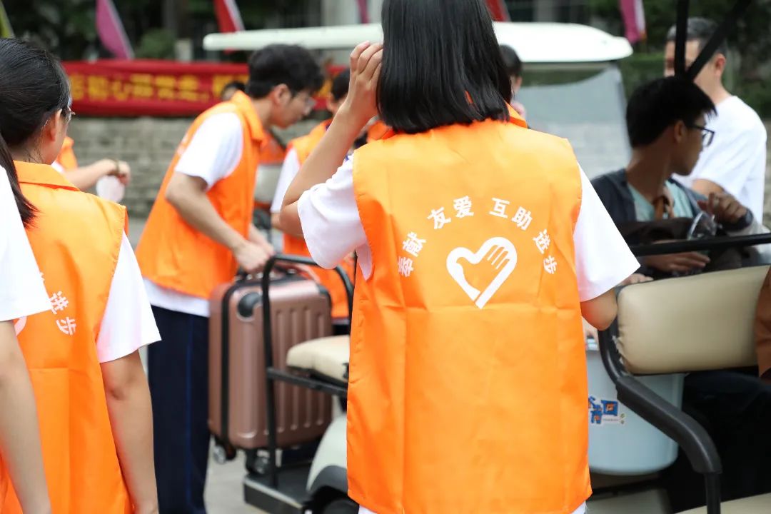 志愿者们热情地为新生引路、搬行李、协助办理报到手续,及时给予周到的帮助……