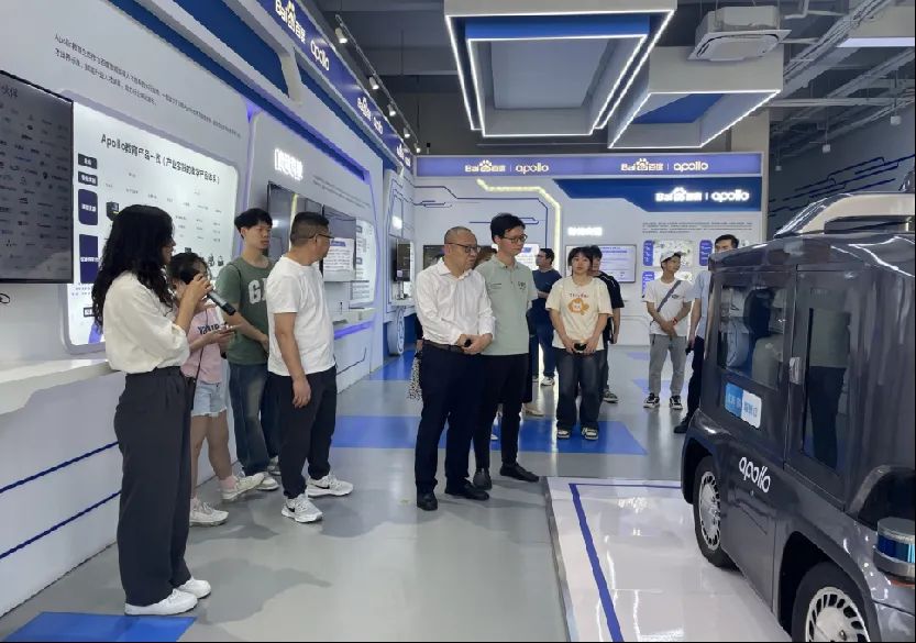 产业学院组织多学科专业师生,赴百度Apollo Park产业研学实践4月11日,我校软件系潘正军主任、产业学院团队及软件系、电子系、产学研工作站学生到访百度Apollo Park开展研学活动。现场讲解员为大家介绍了百度Apollo Park的教育生态、自动驾驶、智能车联、智能交通,并带领师生们先后参观了无人驾驶车辆数据监测平台以及各类自动驾驶车辆类型。此次研学实践为校企双方提供了深入了解和交流的机会,为推动产学研深度融合奠定基础。