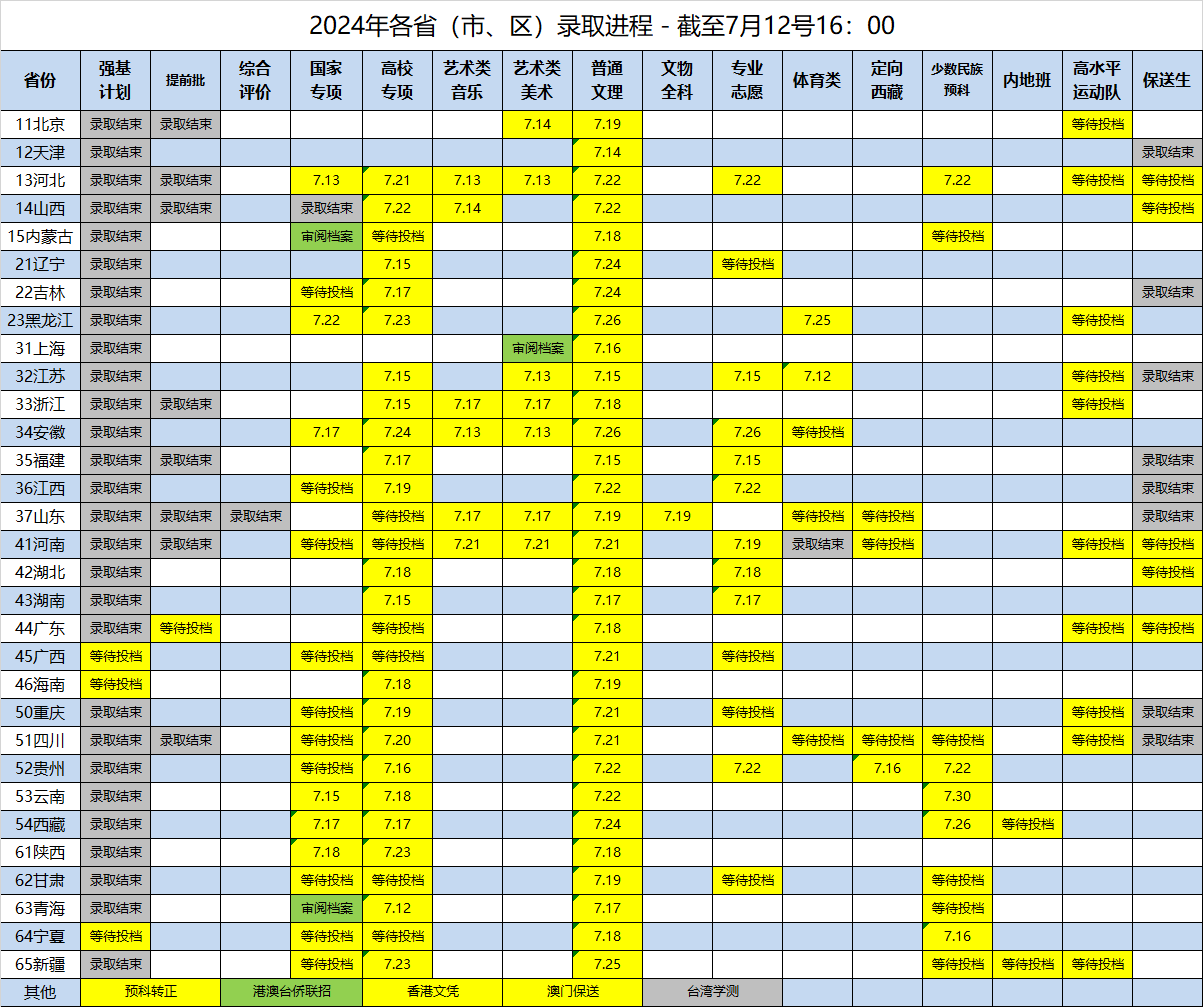1. 录取状态说明:等待省招办投档(标注日期为预计投档时间);审阅考生档案/省招办审核中;录取已结束;通知书已寄出
