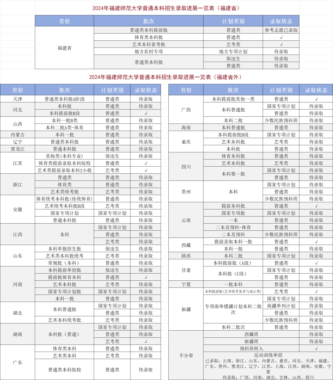 1.未公布录取结果的省份(批次),我校将根据录取进度持续上传更新,请耐心等待。