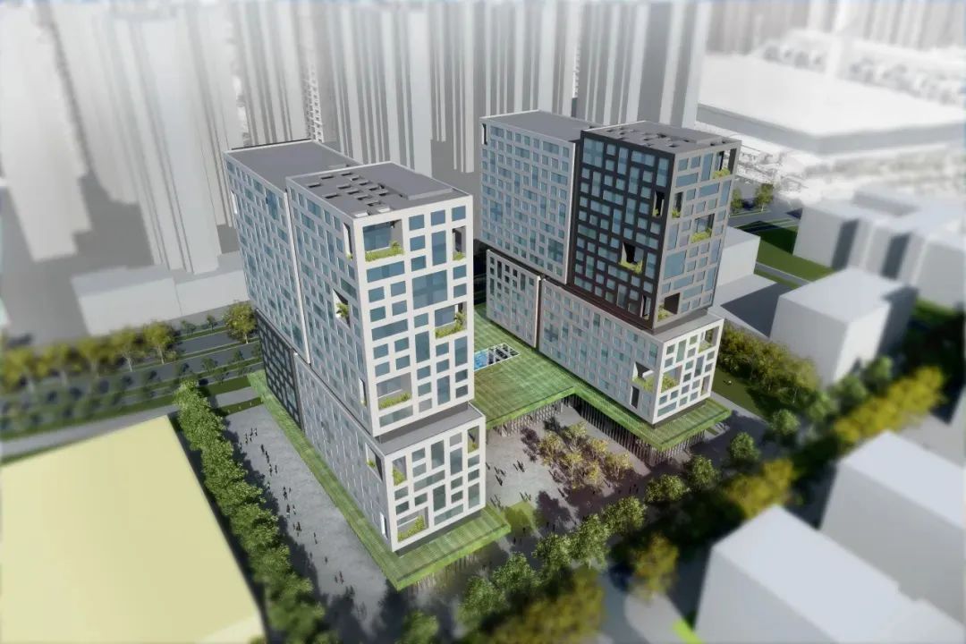 它们如积木般搭建组合为两座20层的公寓塔楼