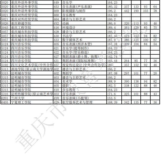 2024年重庆市普通高校招生信息表艺术本科批(二次征集)