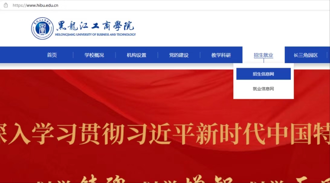 1.学校网站(https://www.hibu.edu.cn/)点击“招生就业”栏目下的“招生信息网”(见下图)