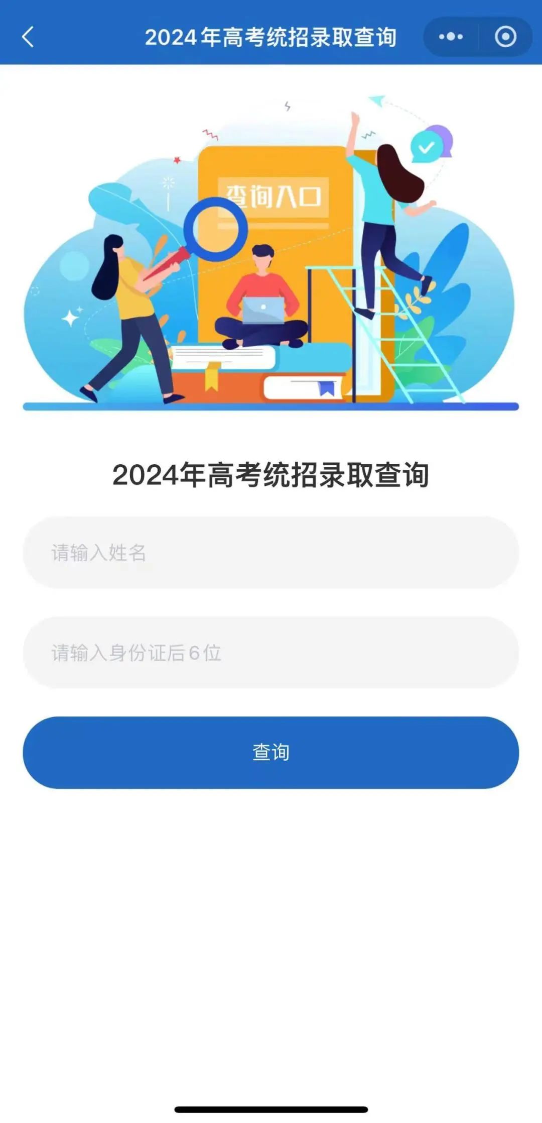 3.输入姓名、身份证号后六位(最后一位为字母X的,需大写)后,即可查询个人录取结果。