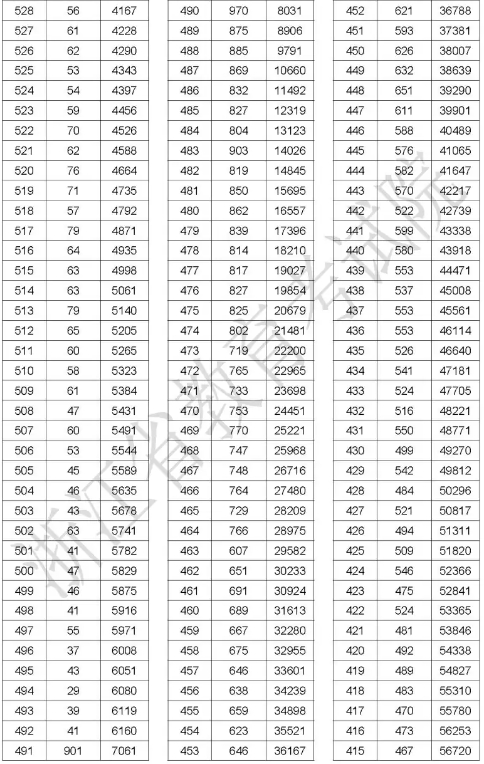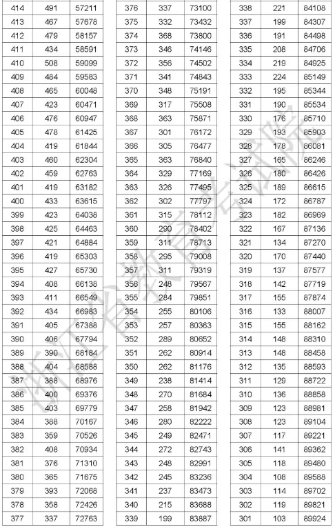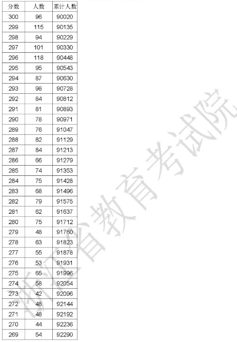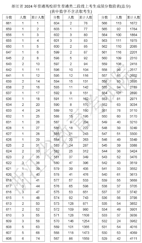 浙江省2024年普通高校招生普通类二段线上考生成绩分数段表(总分)