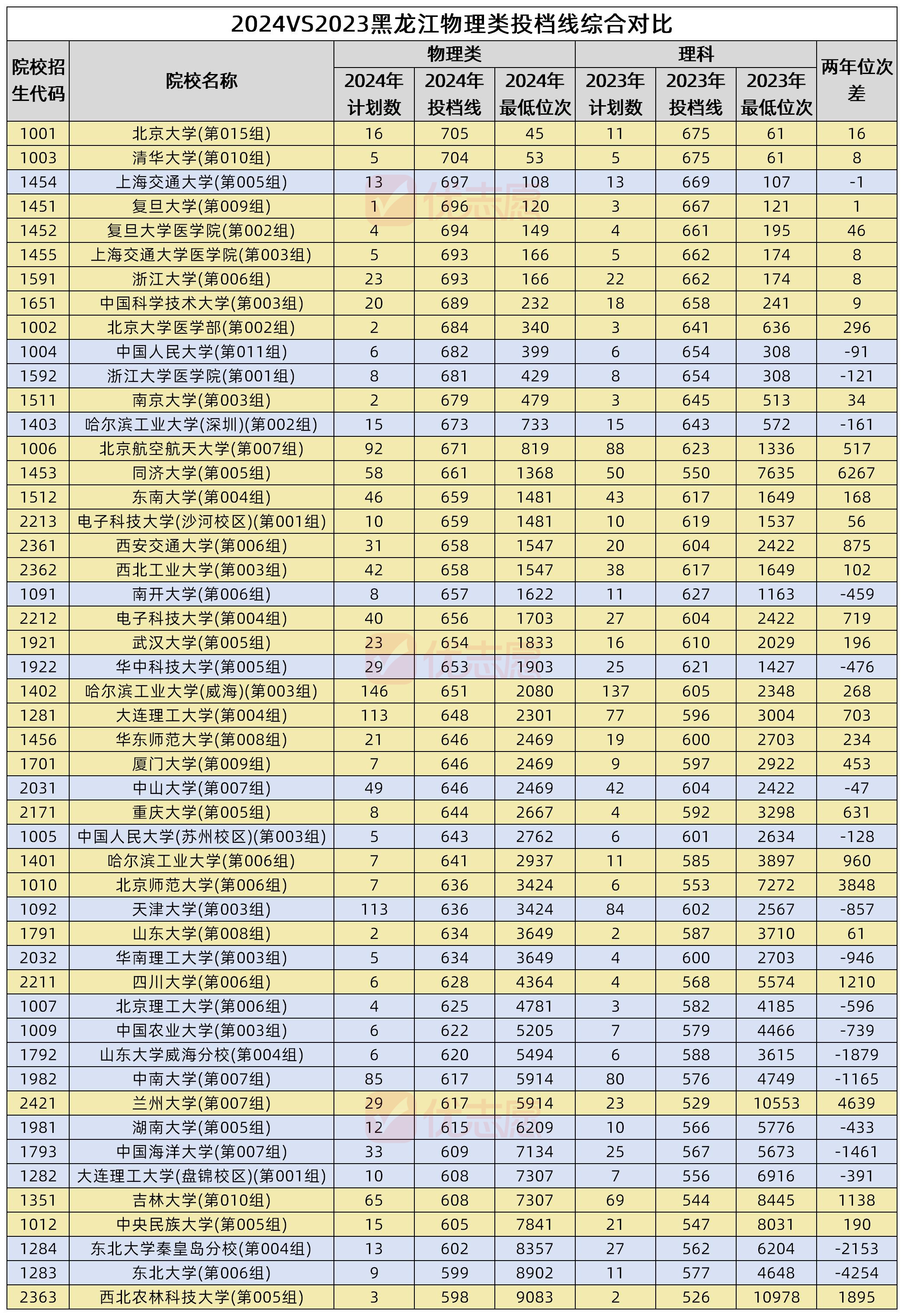 数据来源:1.2023-2024年黑龙江本科批院校投档数据;2.2024年黑龙江高考一分一段表