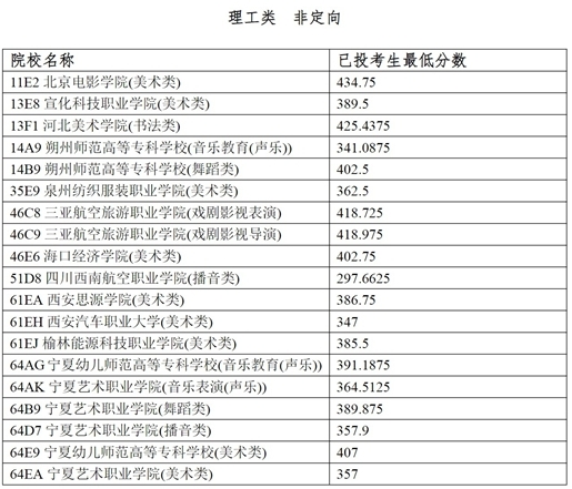 宁夏2024年普通高校招生高职(专科)艺术专业投档信息: