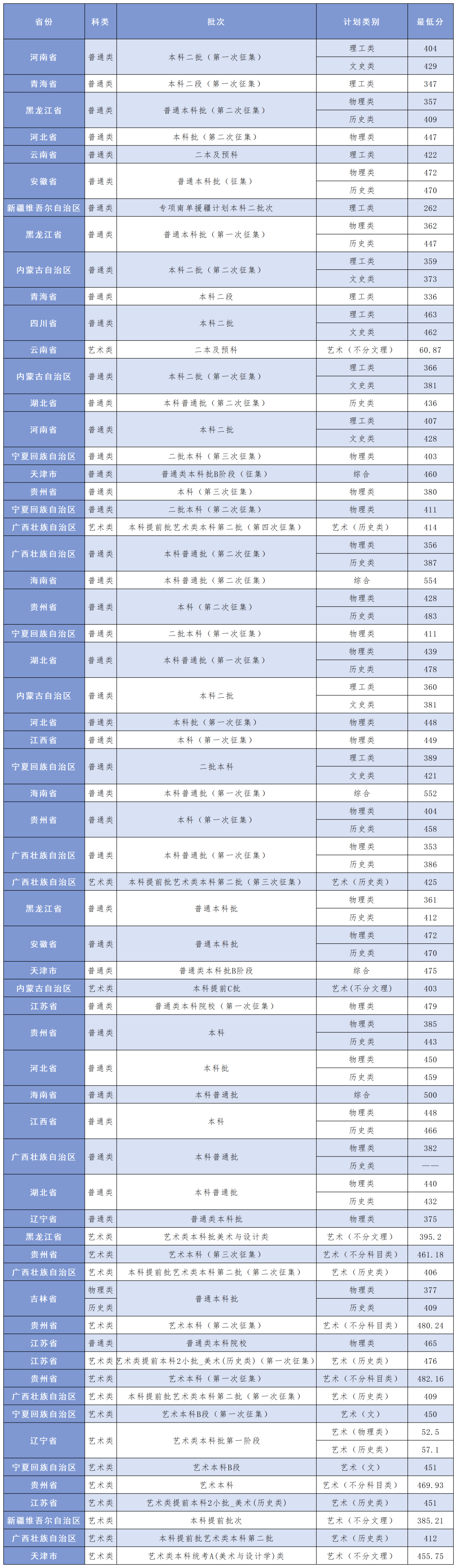 截至目前,录取结束省份相应批次的录取分数公布如下:
