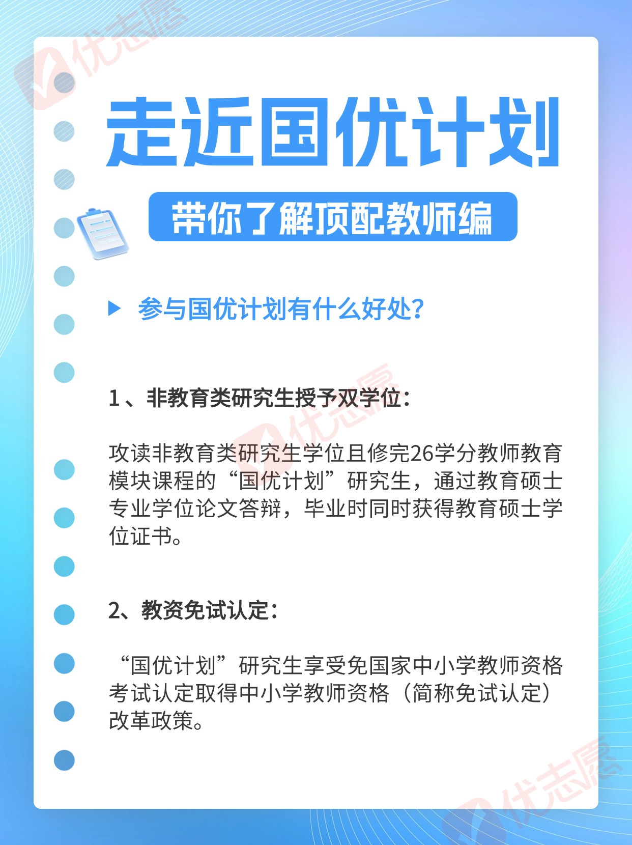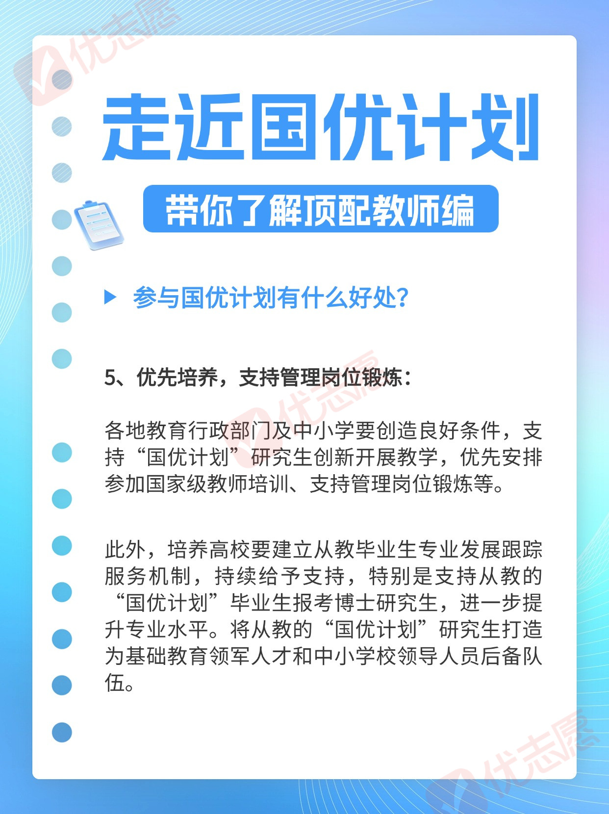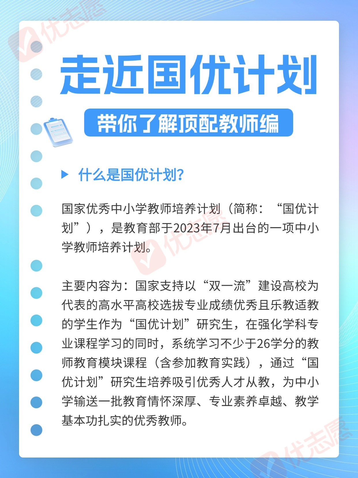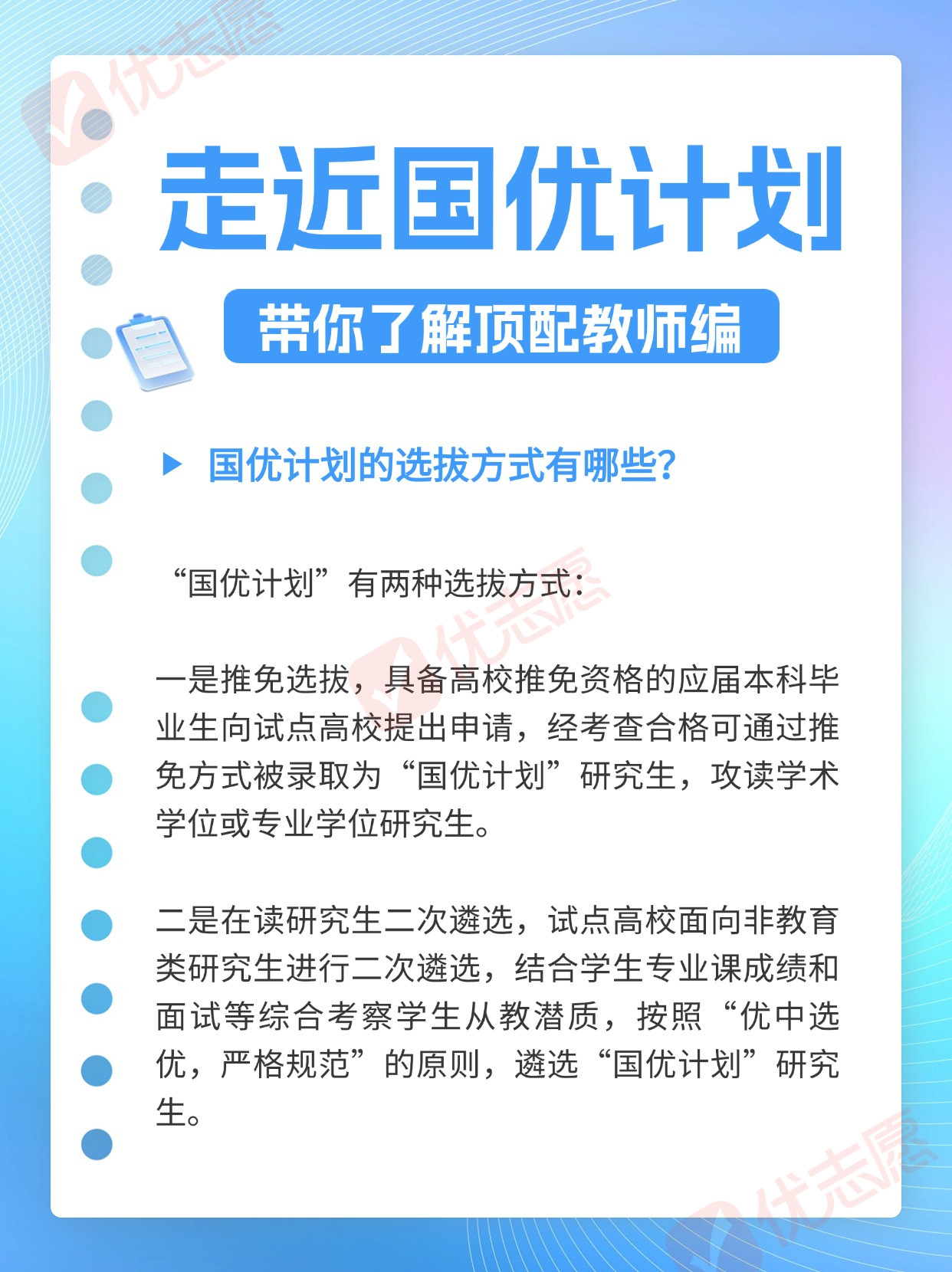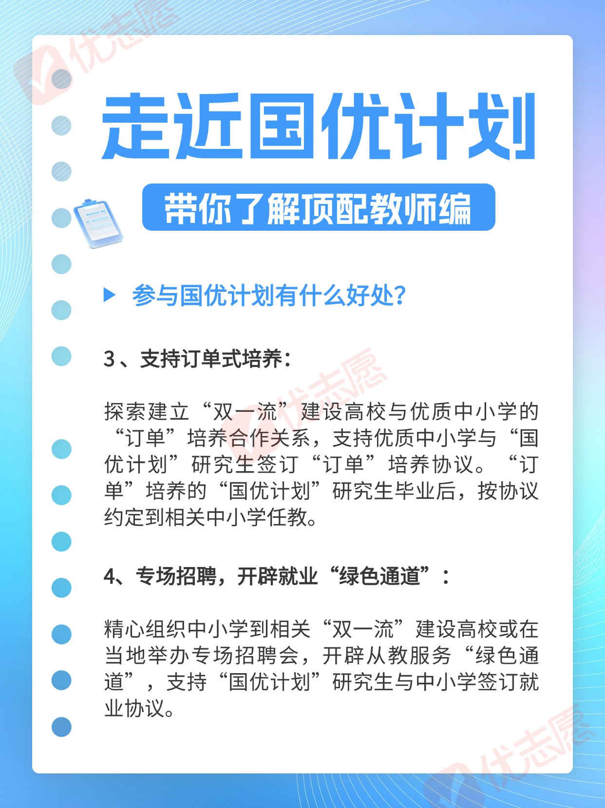 教育部印发通知,将于2024年启动第二批“国优计划”研究生推免选拔和在读研究生二次遴选工作,推进“国优计划”研究生培养,同时也公布了第二批试点高校。对于这项被网友戏称为“顶配教师编”的计划,有哪些亮点值得我们关注呢?