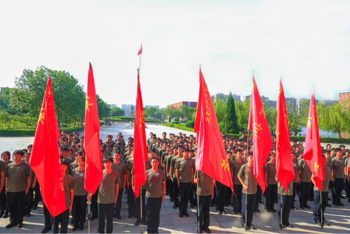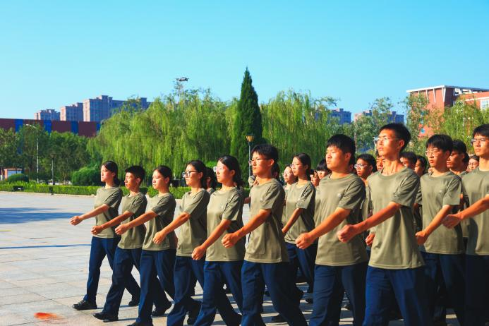 8月28日,我校2024级军训教官团结训仪式在学校图书馆南侧广场举行。经过为期两周的严格训练,全体参训教官以昂扬的斗志、飒爽的英姿,展现了新时代大学生的风采,为2024级军训工作做好了充分的准备。校党委副书记吴立军,学生处处长王庆松,校团委书记、学生处副处长曹蒙春,经济管理学院党政副院长张炳凯,计算机与信息技术学院党政副院长薛彬,电子与电气工程学院党政副院长董立伟,土木建筑工程学院党政副院长姚晶晶,机械与动力工程学院党政副院长任一帆,轨道交通学院党政副院长翟砚辉,艺术学院党政副院长刘展辰,外国语学院党政副院长陈超,化学与制药工程学院党政副院长许晓娟以及各学院团委书记、2024级新生辅导员老师参加本次结训仪式。