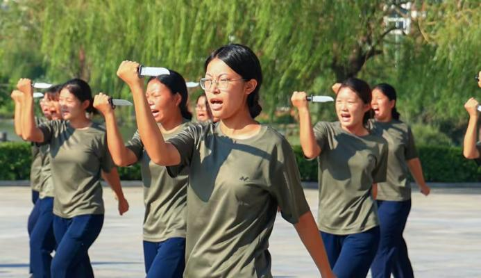 匕首操方阵展示,手持战斗匕首,清脆呐喊如破空之剑,锐利而迅捷。她们如同出鞘利刃,势如破竹。