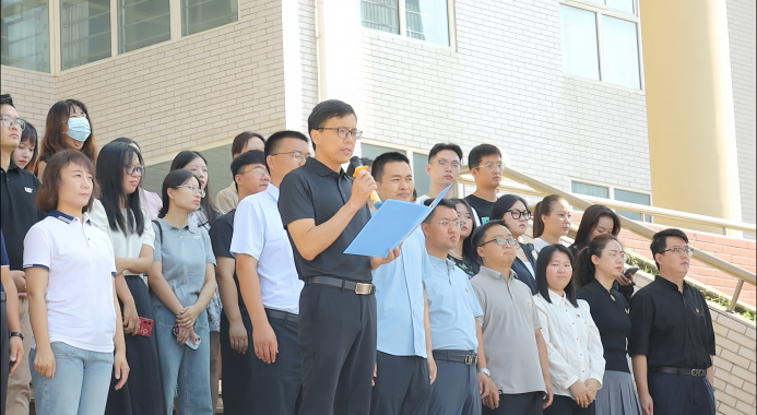 我校党委副书记吴立军致辞,他谨代表学校向全体教官表示最衷心的感谢。在军训培训中,军训教官们勇敢直面重重困难,凭借强烈的责任感和卓越的军事素养,全身心投入到教官培训中,出色完成了此次艰巨任务,为2024级军训工作提供了坚实有力的保障。他对即将开展的2024级军训工作提出三点期望:一是争当“全能”教官,塑造优良品格。二是严格自我要求,成为卓越教官。三是践行教官使命,发挥引领作用。相信在教官们的努力下,2024级军训工作将取得圆满成功,为新生们的大学生活开启绚丽的篇章!