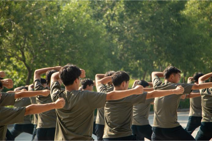 队列班汇报展示,教官们动作干净利落,步伐整齐有力。士气昂扬,彰显着每个队伍的蓬勃之态。