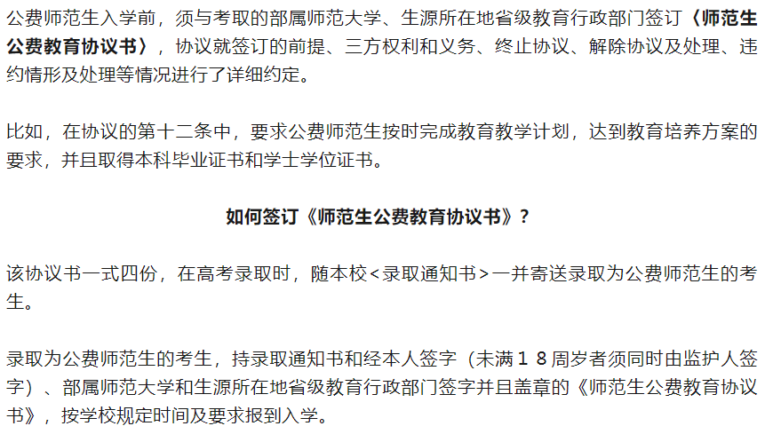 问:是否必须签订《师范生公费教育协议书》?具体包含什么内容?