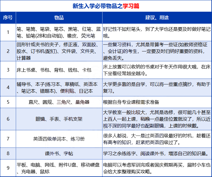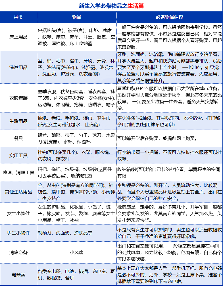离家较远或者去省外上大学的同学们,开学该带什么东西,小优都帮你们整理好了,一起来看!