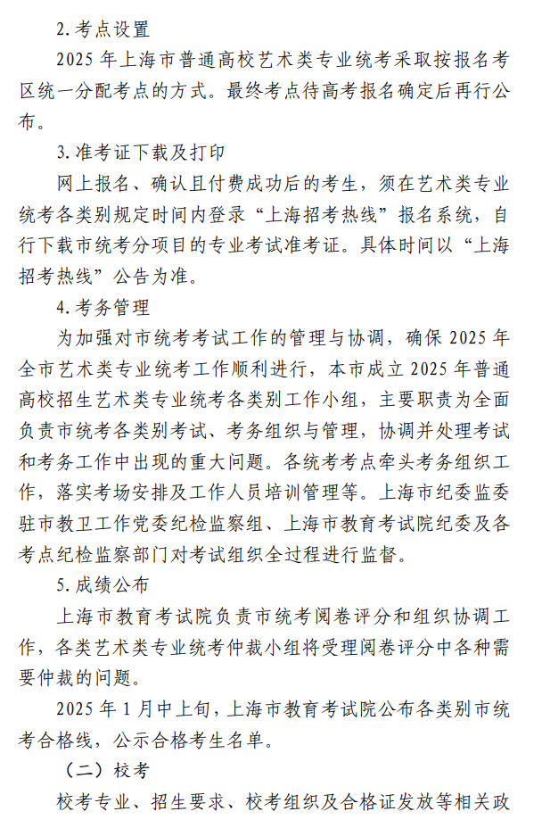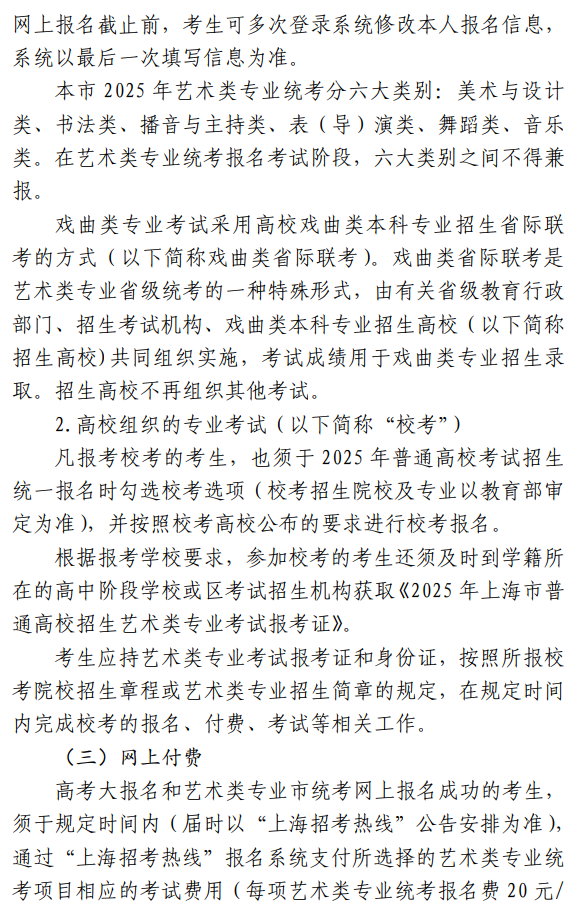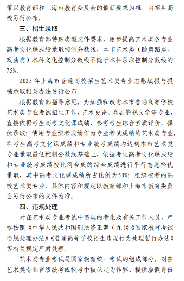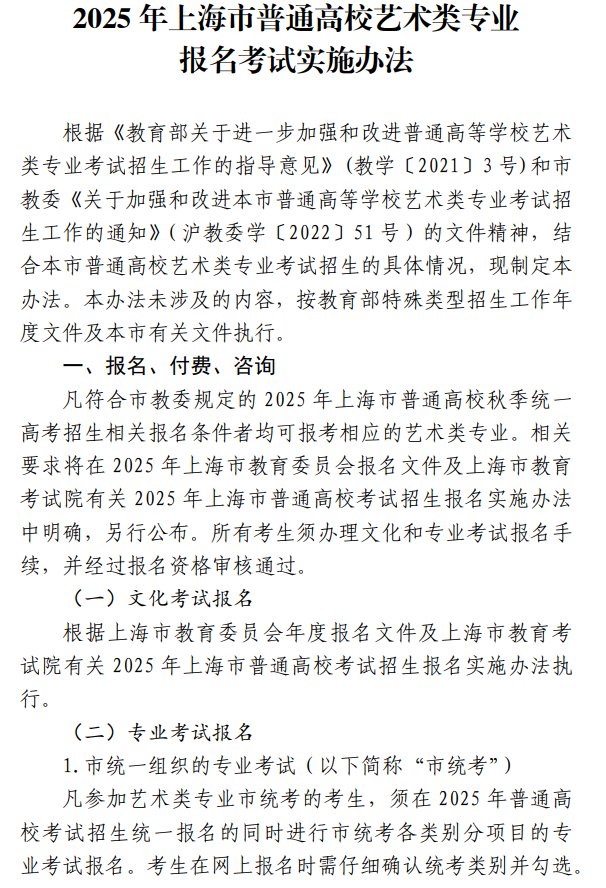 上海市2025普通高校艺术类专业报名考试实施办法公布