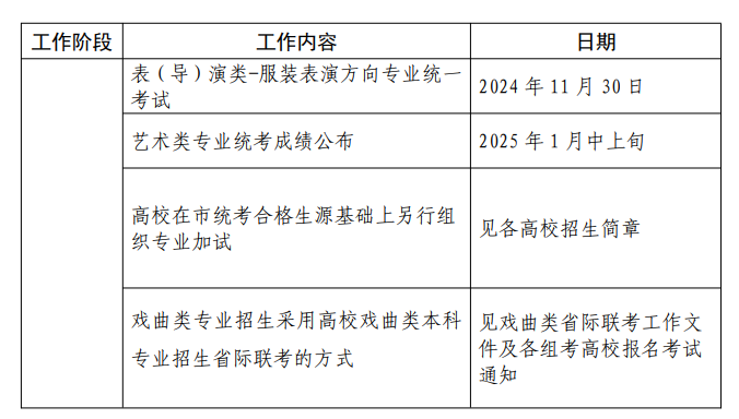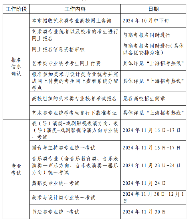 2025年上海市普通高校艺术类专业报名考试工作日程表