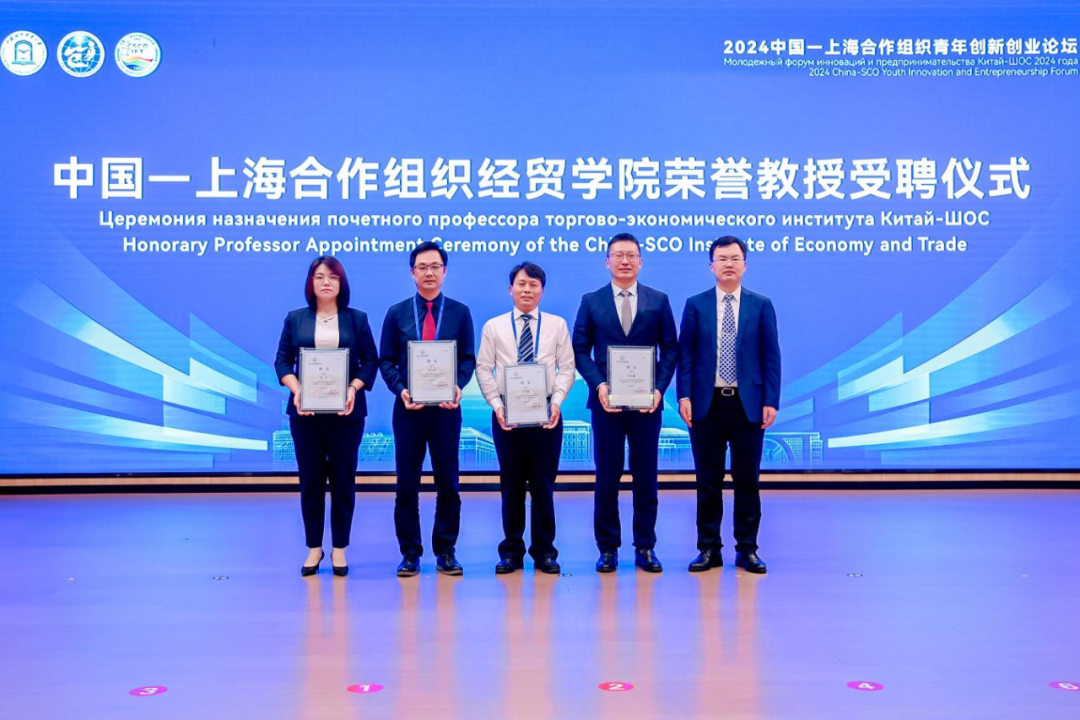 随后,郑师为吴国新、蒙志明、席岩、乔宝刚颁发了中国—上海合作组织经贸学院荣誉教授证书。